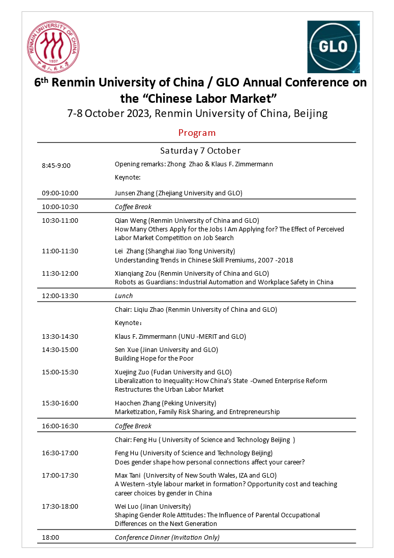 6th Renmin University of China / GLO Annual Conference on the “Chinese Labor Market”