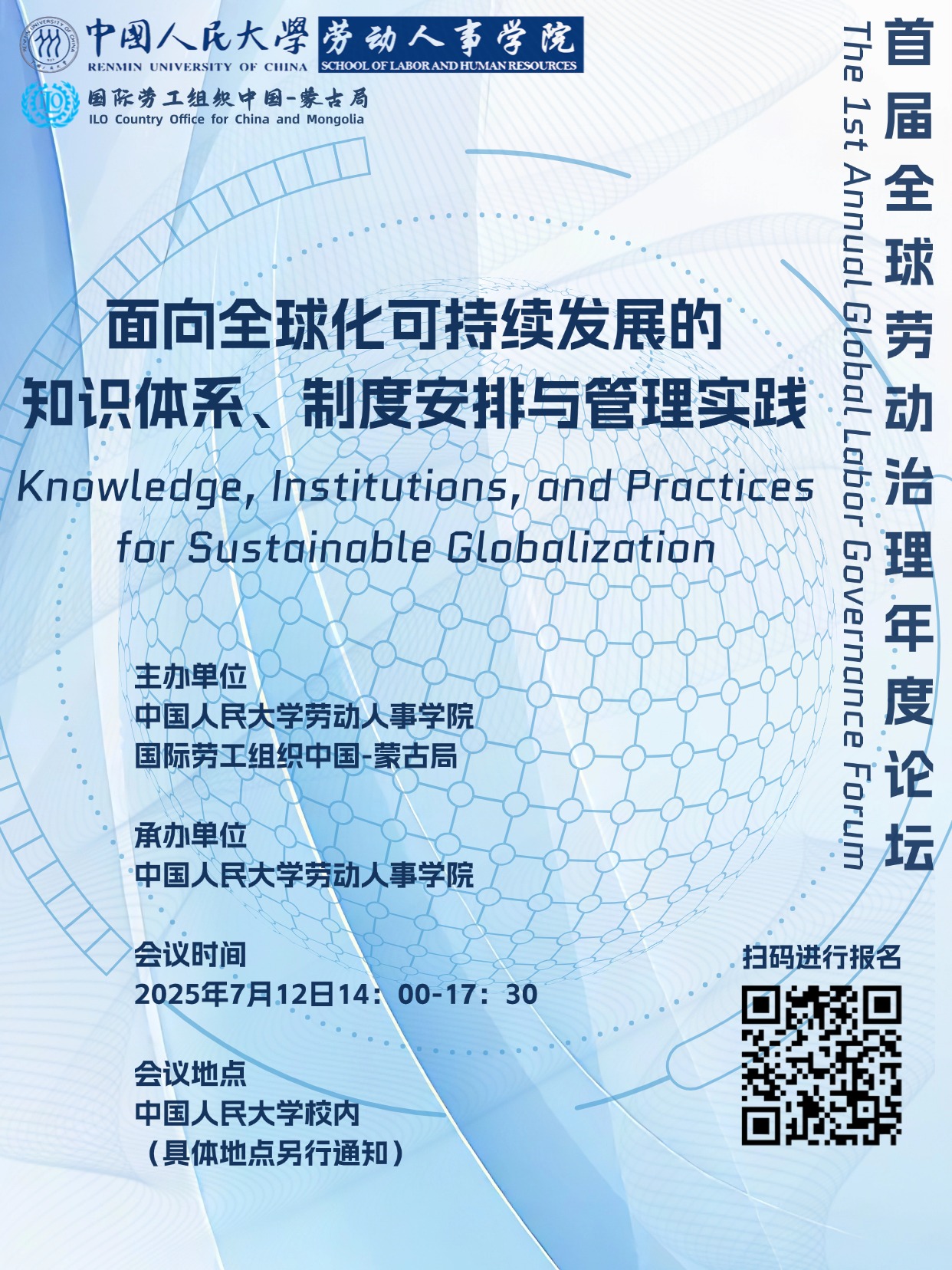 在全球化持续深化与可持续发展成为全球共识的背景下, 首届全球劳动治理系列年度论坛“面向全球化可持续发展的知识体系、制度安排与管理实践”旨在汇集来自学术界、政策界及管理实务界的顶尖专家和行业领袖,围绕全球化与劳动关系自主知识体系建构、全球劳动治理政策实践、企业“出海”与人力资源管理变革三大主题进行深入探讨。会议还将由免费黄色网站 和国际劳工组织中国-蒙古局联合发布年度旗舰报告。诚邀学术界、政策界、管理实务界同仁和广大校内外师生关注、参与!