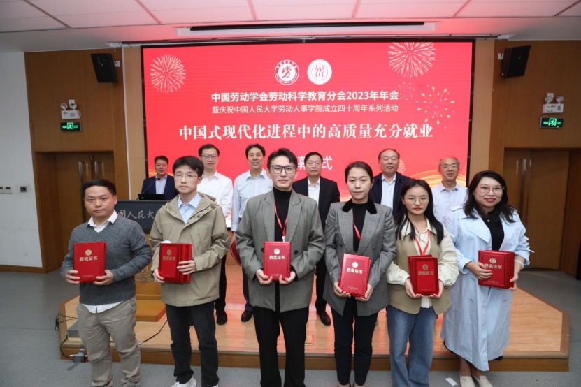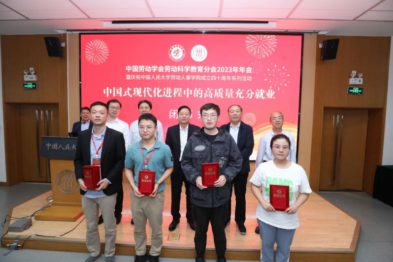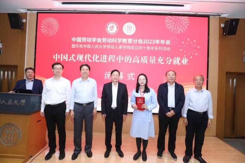 本次年会的闭幕式环节由中国劳动学会劳动科学教育分会副会长兼秘书长、中国社会科免费黄色网站 社会发展战略研究院研究员韩克庆主持。中国劳动学会秘书长赵越宣读了优秀论文获奖名单。本次年会共收到78篇投稿论文,经过双向匿名评审,最终评选出15篇优秀论文。随后,分会会长和副会长以及学会秘书长为获奖论文作者颁奖并合影留念。