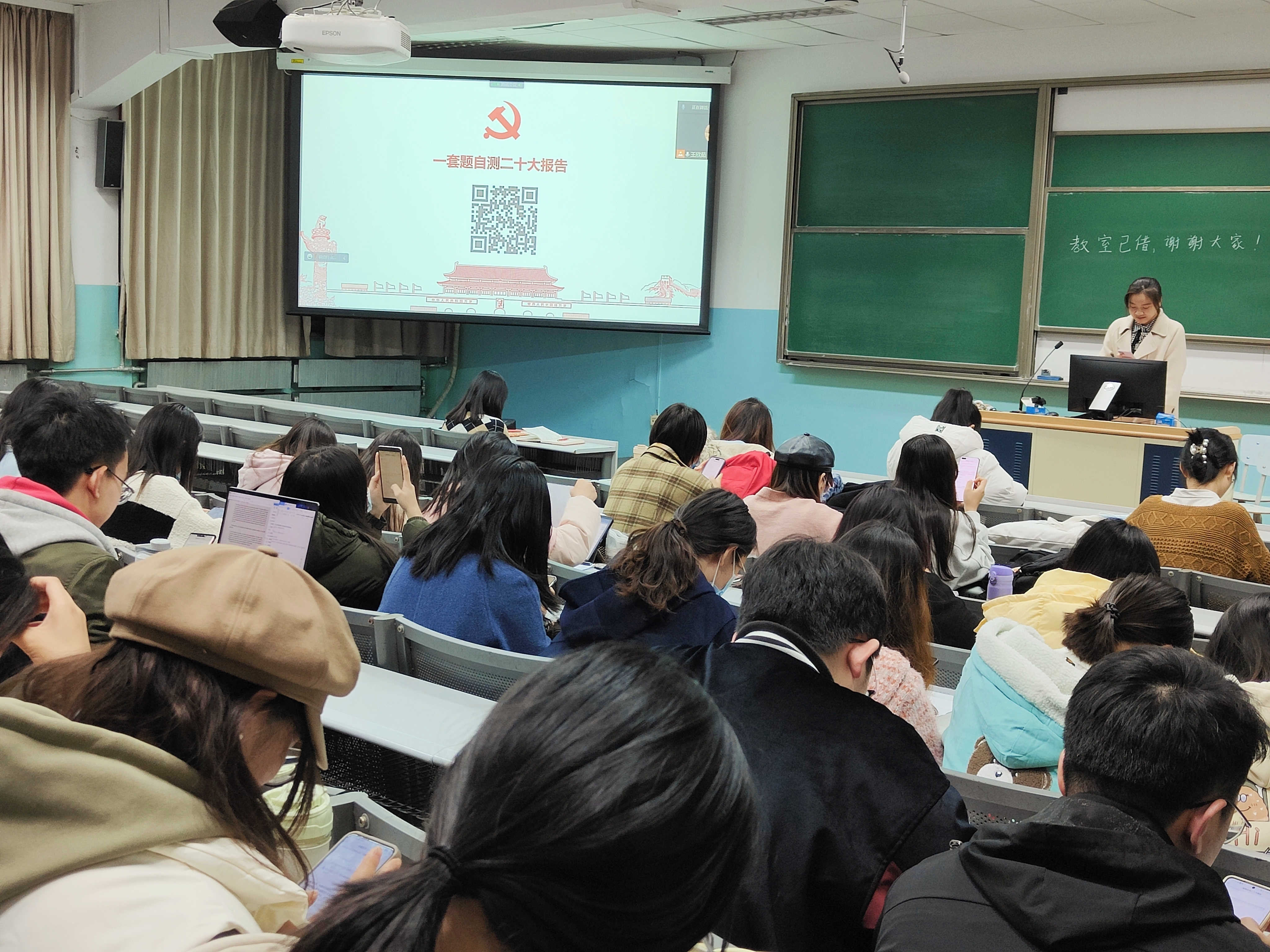 首先,彭格格和王欣茹带领与会同志深入学习领会党的二十大精神。彭格格梳理了党的二十大报告的主体结构,并对报告的重要内容进行深入解读。随后,王欣茹综合运用文本知识串讲、微视频在线学习、知识测验等方式,带领与会同志就党的二十大报告中的“新表述、新概括、新论断”和“关于教育的重要论述”展开学习。她表示,支部全体同志要深刻认识中国共产党第二十次全国代表大会的重大意义,必须学深悟透党的二十大精神,在党的二十大绘就的蓝图下,用奋斗书写华章。
