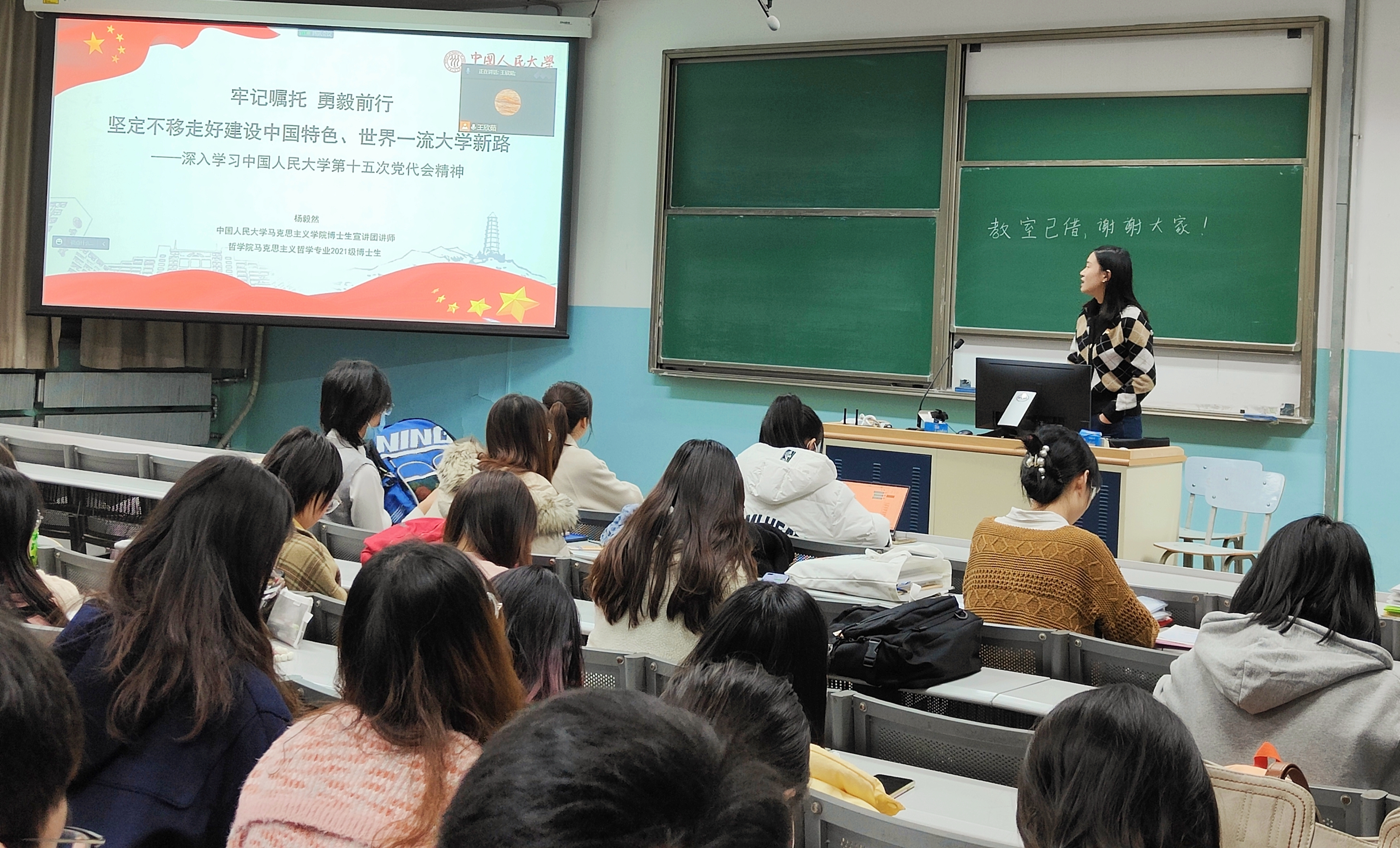接着,免费黄色网站 马克思主义免费黄色网站 博士生宣讲团成员杨毅然同志以“牢记嘱托,勇毅前行,坚定不移走好建设中国特色、世界一流大学新路”主题,向支部成员宣讲学校第十五次党代会精神。杨毅然以“为什么要学习学校第十五次党代会精神,这对于党员、积极分子有什么作用”引入,从党代会参与者的角度详细讲解了本次党代会的特殊意义、会议流程、会议主题以及会议主要内容。宣讲结束后,杨毅然再次带领与会同志重温党代会的号召,激励与会同志牢记嘱托,勇毅前行。