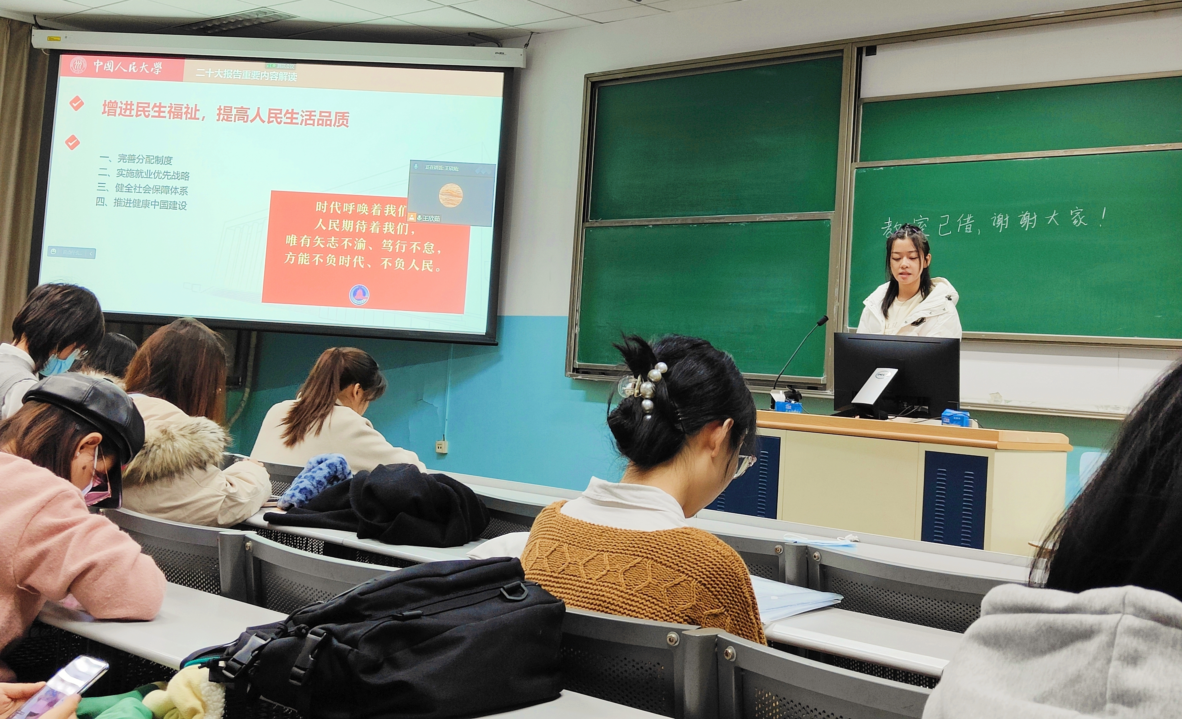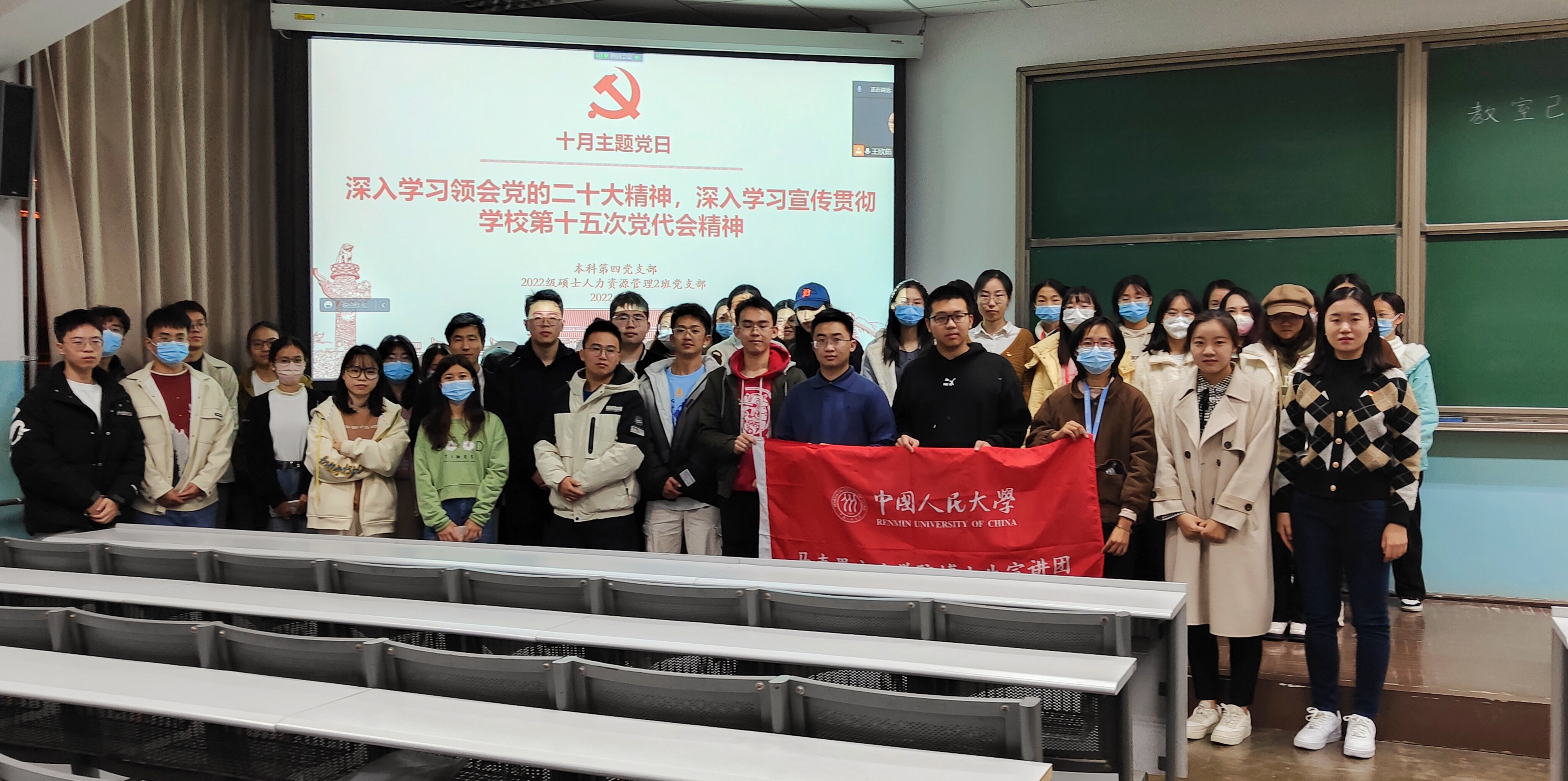 2022年10月27日晚,免费黄色网站 本科第四党支部与2022级硕士人力资源管理2班党支部在求是楼0120教室联合开展“深入学习领会党的二十大精神,深入学习宣传贯彻学校第十五次党代会精神”主题党日活动。活动由本科第四党支部副书记王欣茹和2022级硕士人力资源管理2班党支部书记彭格格共同主持,支部全体党员和若干积极分子参加活动并分享学习感悟。
