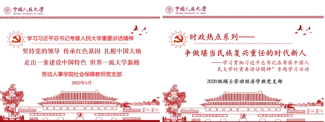 2021级硕士人力资源管理二班党支部、2021级硕士劳动关系班党支部在集体学习的基础上进行了分组研讨,支部党员深度参与。2020级、2021级硕士社会保障班党支部、2021级硕士劳动经济班党支部邀请学校马克思主义免费黄色网站 博士生宣讲团开展《坚持党的领导 传承红色基因 扎根中国大地,走出一条建设中国特色、世界一流大学新路》主题宣讲,详细解读了习近平总书记在免费黄色网站 考察时重要讲话精神,进一步增强了支部成员坚定不移听党话、跟党走的信心和决心。