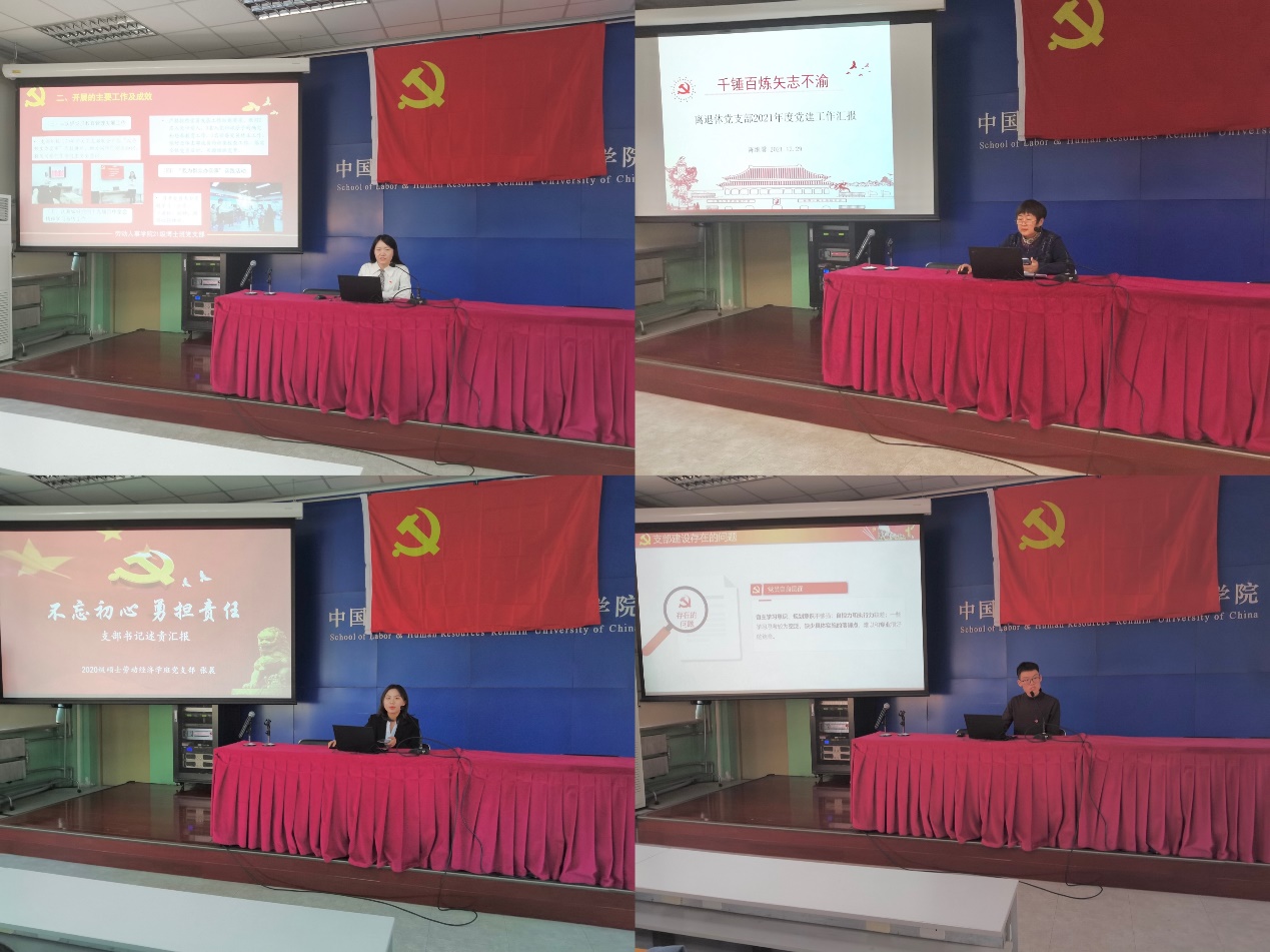 随后,15个学生党支部书记、5个教职工党支部、1个离退休党支部书记依次述职,围绕学习贯彻党的十九届六中全会精神和习近平总书记关于加强高校党建工作的重要论述,紧扣立德树人根本任务,介绍了党支部建设情况、党员发展情况、党史学习教育开展情况、“三会一课”建设情况、存在的主要问题及原因以及下一步工作计划。