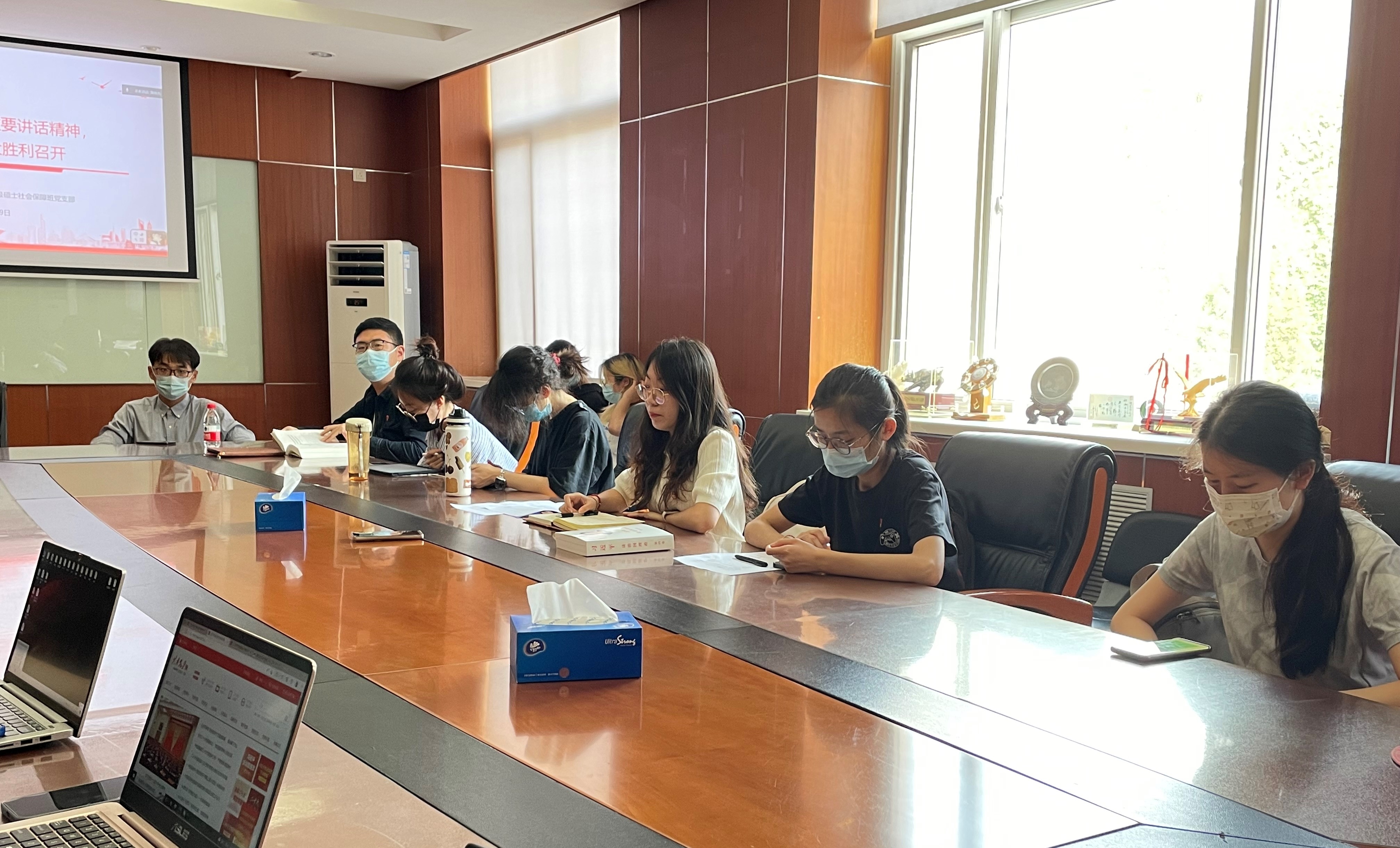 2022年9月29日,免费黄色网站 2021级硕士社会保障班党支部开展“学习习近平总书记重要讲话精神,迎接党的二十大胜利召开”主题党日活动,深入学习《习近平谈治国理政》第四卷。2021级硕士社会保障班党支部全体党员和入党积极分子参加活动,本次活动由党支部书记袁春宇主持。免费黄色网站 党委副书记陈姚、党务秘书王鸿飞受邀参加活动。