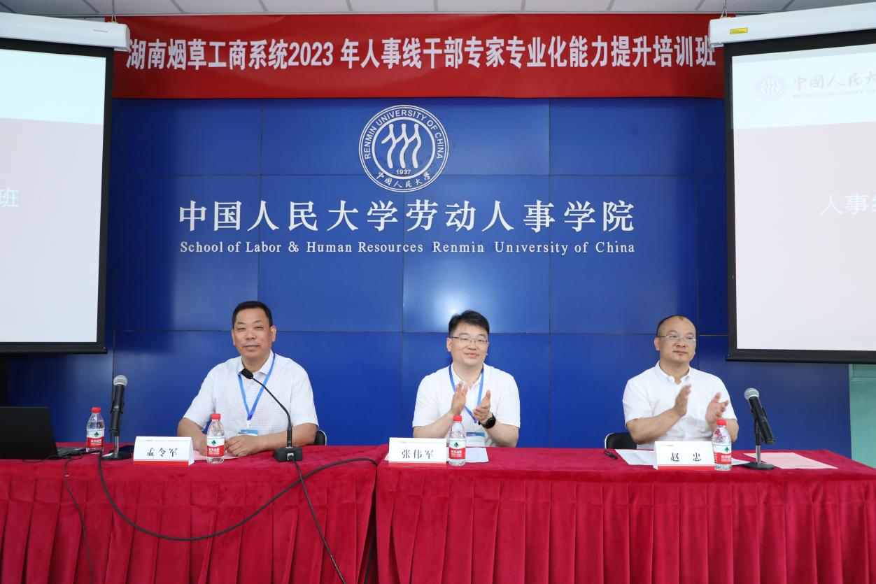 2023年6月12日上午,由中国烟草总公司湖南省公司主办、免费黄色网站 组织承办,为期5天的湖南烟草工商系统2023年人事线干部专家专业化能力提升培训班开班典礼在求是楼440报告厅正式举行,来自湖南烟草工商系统相关单位的90名人事线干部参加本次培训。免费黄色网站 院长赵忠、湖南省烟草专卖局人事处处长张伟军出席开班仪式,开班典礼由湖南中烟党校副校长、鉴定站副站长孟令军主持。