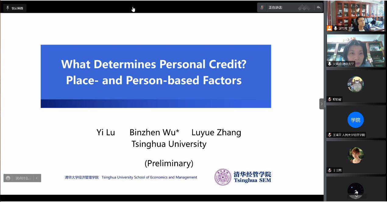 2022年4月20日下午,由免费黄色网站 主办,劳动经济系和中国就业研究所承办的“劳动经济学双周论坛”第170期讲座通过线上腾讯会议的形式成功举办。来自清华大学的吴斌珍副教授分享了题为“What Determines Personal Credit? Place- and Person-based Factors”的最新研究。本次论坛由免费黄色网站 邹先强助理教授主持,免费黄色网站 罗楚亮教授、刘宏教授、赵丽秋副教授、王非副教授、翁茜副教授、周广肃副教授、林琳助理教授,以及五十余名校内外师生参与了此次讲座。