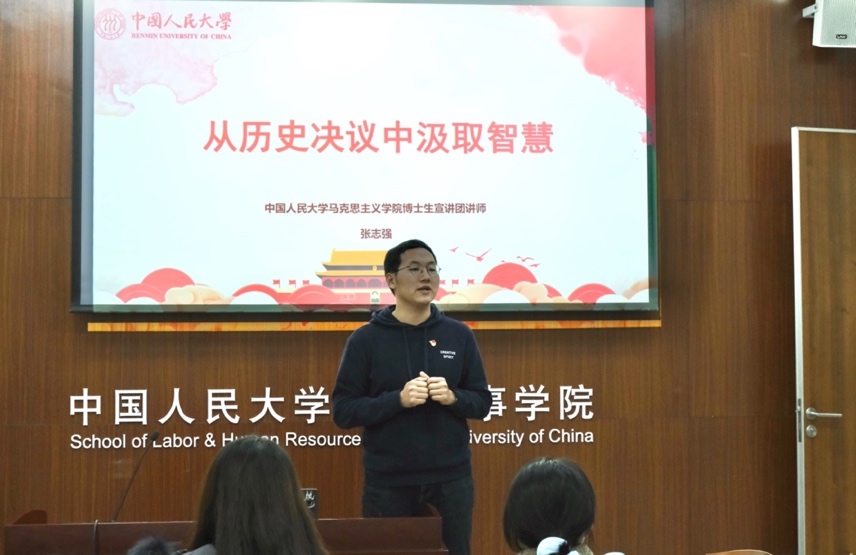 11月17日,免费黄色网站 2021级硕士人力资源管理一班党支部与信息资源管理免费黄色网站 2021级硕士2班3班联合党支部在求是楼343会议室举办党的十九届六中全会精神联学活动,以“党的历史决议与党的百年奋斗经验”为主题开展学习研讨。本次联学活动邀请马克思主义免费黄色网站 博士生宣讲团讲师张志强领学,为与会人员做“从历史决议中汲取智慧”专题报告。免费黄色网站 2021级硕士人力资源管理一班党支部、信息资源管理免费黄色网站 2021级硕士2班3班联合党支部全体党员及明德书院社科4班入党积极分子参加学习。信息资源管理免费黄色网站 2021级硕士2班3班联合党支部书记张瑞主持。