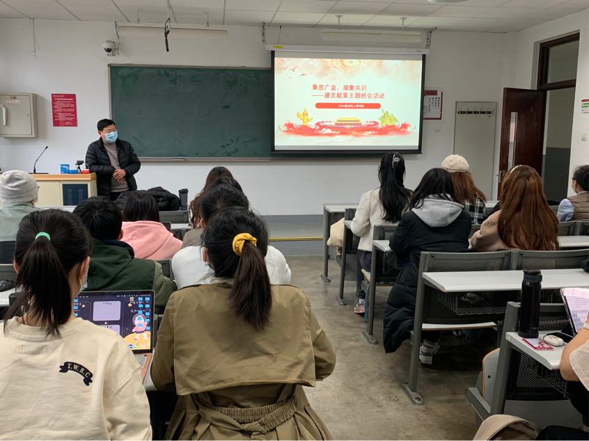 为积极响应学校“‘独树一帜’创一流——我为党代会建言献策”活动,3月25日下午,免费黄色网站 2021级本科人力资源管理4班开展了以“集思广益,凝聚共识”为主题的“建言献策”班会活动。免费黄色网站 党委副书记吴自强、2021级本科人力资源管理4班班主任陈雯老师出席本次活动。