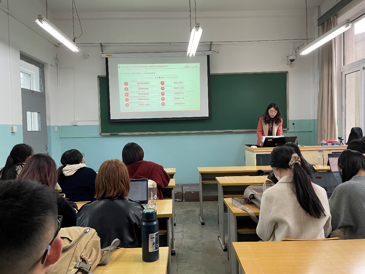 支部组织委员韩赛赛就“如何全面认识中国共产党百年奋斗的历史经验”这一问题交流了学习感悟。她表示,我们党历来高度重视总结历史经验,及时总结历史经验能够统一思想认识、凝聚党心民心,是我们党在长期奋斗中形成的重要工作方法和显著政治优势。同时,党的历史经验是党和人民弥足珍贵的精神财富,使我们能够在总结历史经验、把握历史规律中掌握历史主动。