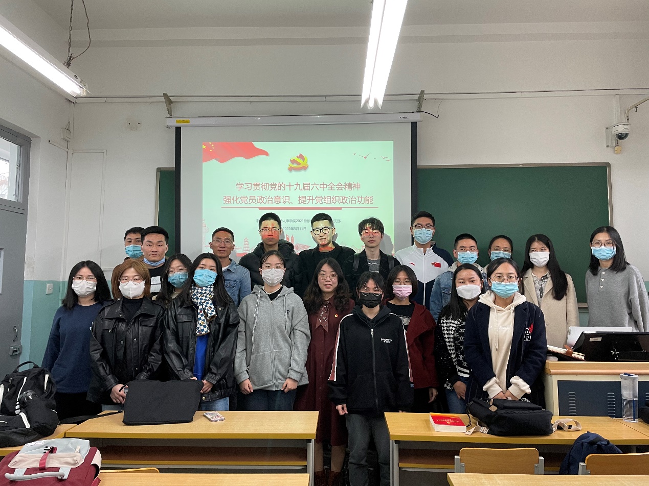 3月11日,免费黄色网站 2021级硕士社会保障班党支部开展“学习贯彻党的十九届六中全会精神,强化党员政治意识、提升党组织政治功能”主题党日活动,围绕党的十九届六中全会精神、习近平总书记重要讲话重要指示批示精神、党章党规等开展学习。本次主题党日活动主要包括专题学习、集体研读、心得交流和建言献策四个环节,活动由党支部书记袁春宇主持,支部全体党员、部分入党积极分子参加了本次活动。