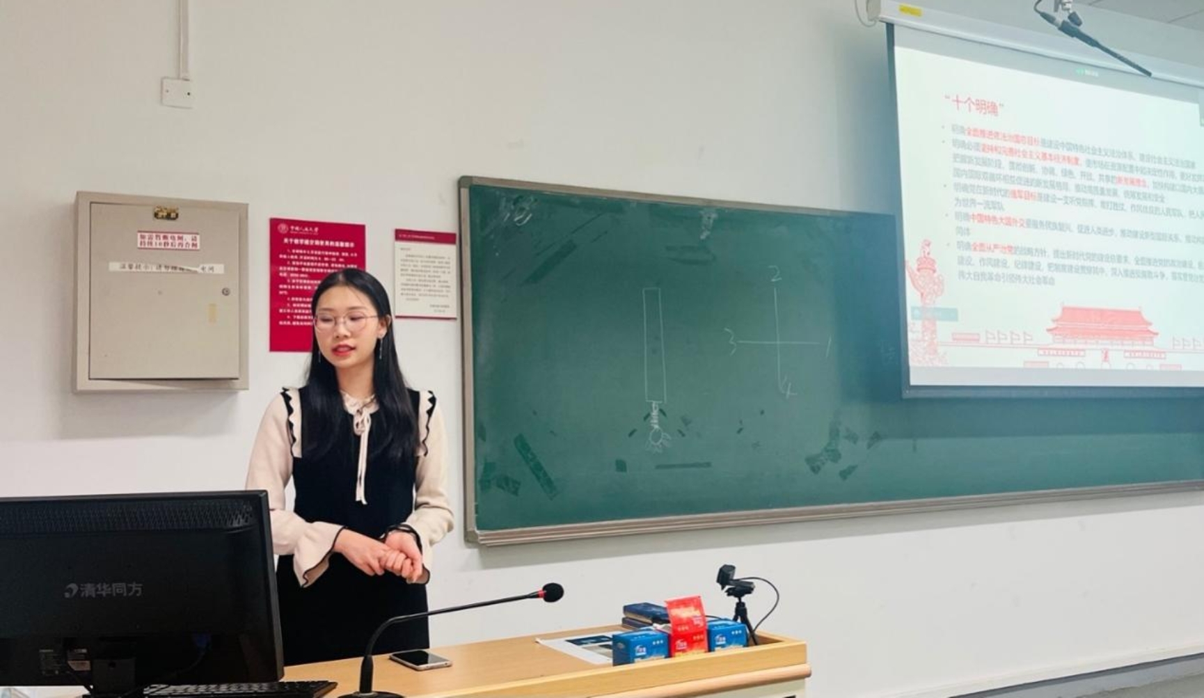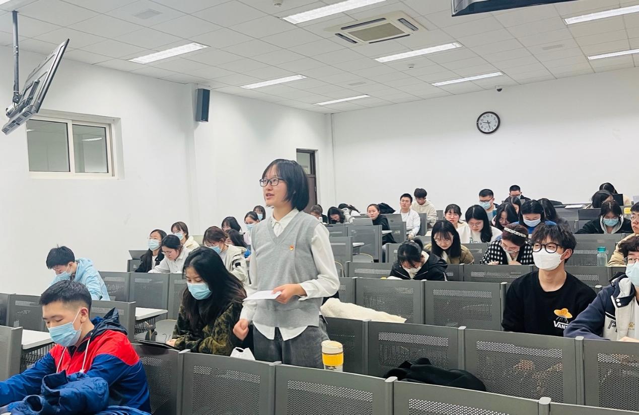 在主题学习教育模块,陈致璇首先带领全体与会同志回顾十九届六中全会的召开背景,并综合运用文本知识串讲、微视频在线学习等方式,全面生动地讲解了“十个明确”、“十个坚持”和“两个确立”的具体内容与深刻内涵。讲解完毕后,陈致璇引导大家扫码答题,自测十九届六中全会相关知识,同时鼓励大家积极主动地利用“共产党员网”等全媒体学习平台,以更加常态化、灵活化的方式推进理论学习。陈致璇还向支部党员同志介绍了学校第十五次党代会的相关安排,她表示,支部全体党员要深刻认识召开学校第十五次党员代表大会的重大意义,要把参与好这次党代会作为深刻学习领会党的十九届六中全会精神的重要契机。
