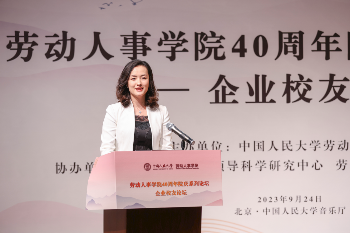 2005级硕士校友、中国工商银行总行投资银行部综合管理处处长兼金融顾问咨询处处长王佳发表《“肆”水流年“拾”级而上》主题演讲。围绕“情怀”二字,王佳校友指出“劳人之事,成人之美”蕴含的担当奉献、家国情怀。结合自己在工商银行的工作经历,王佳校友进一步强调人力资源工作者要心怀功成不必在我、功成必定有我的使命担当,践行以人民为中心的家国情怀。
