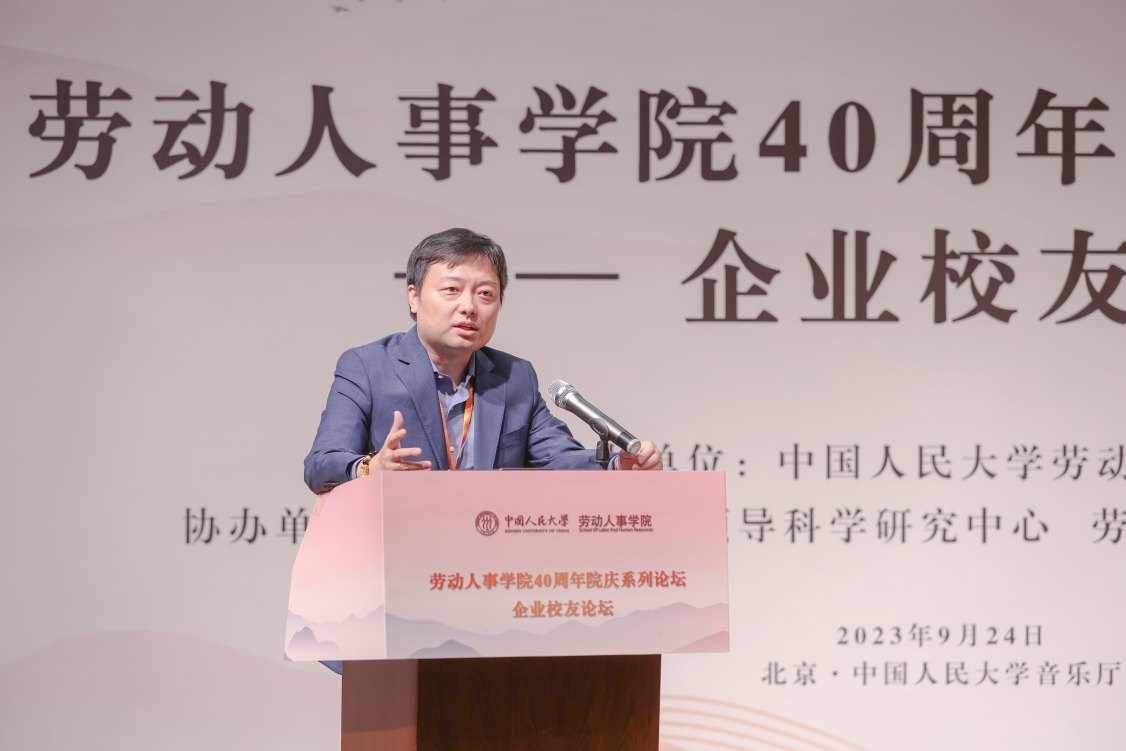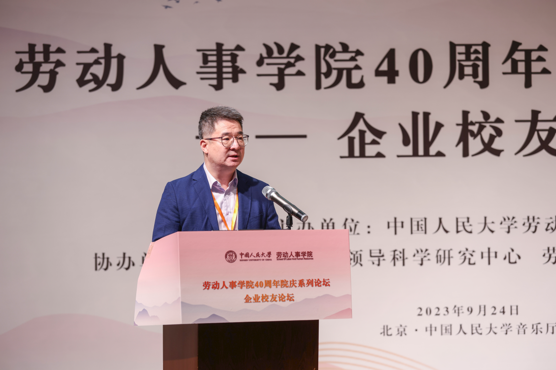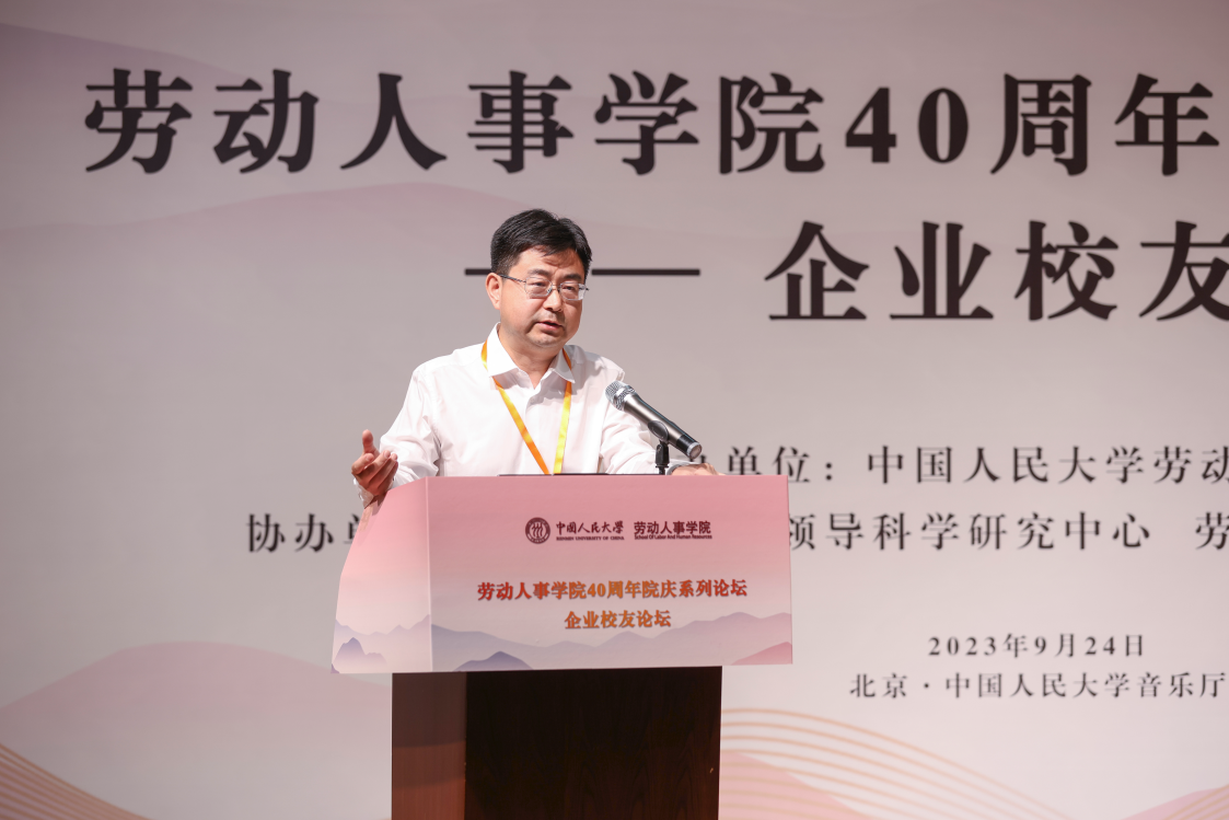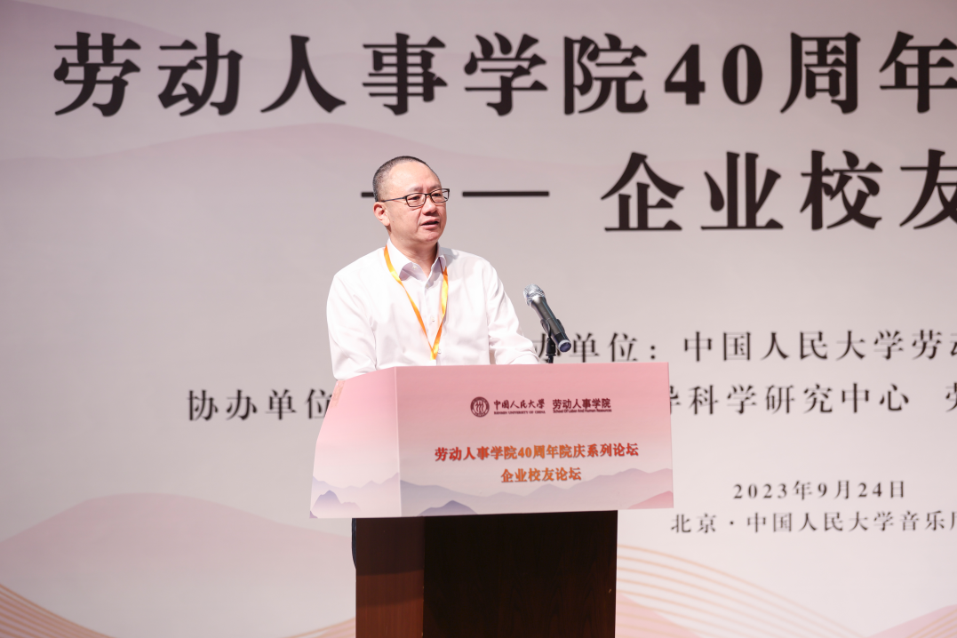 免费黄色网站 党委副书记郑水泉教授为论坛致词。郑水泉代表学校向劳人院全体师生校友致以问候和祝贺,强调了免费黄色网站 40年来在人力资源管理领域人才培养、学术研究、智库建设等方面的贡献,希望免费黄色网站 在未来发展建设中始终面向人力资源领域创新前沿,面向国家和社会所需、学校改革发展所盼。郑水泉表示校友是学校的宝贵财富,对各位嘉宾的到来表示特别的感谢和欢迎,希望通过此次校友论坛实现思想智慧分享和资源双向互动,共同探讨中国企业高质量发展之路,对本届论坛圆满举办寄予厚望。