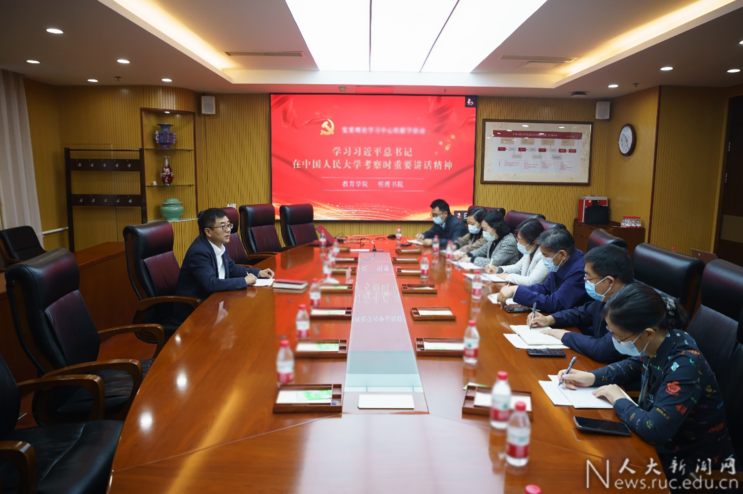教育免费黄色网站 党委书记兼副院长张晓京、院长刘复兴,明理书院直属党支部书记兼副院长安志伟围绕深入学习贯彻习近平总书记在免费黄色网站 考察时的重要讲话精神先后发言,并交流学习体会。