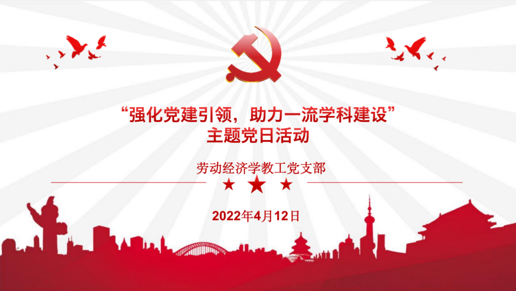4月12日中午,免费黄色网站 劳动经济学教师党支部联合2021级硕士劳动经济学班党支部,在求是楼347会议室开展“强化党建引领,助力一流学科建设”主题党日活动。劳动经济学教师党支部党员、2021级硕士劳动经济学班党支部党员及劳动经济学系教师代表、本科生代表共同参加了会议。会议由劳动经济学系主任韩军主持。