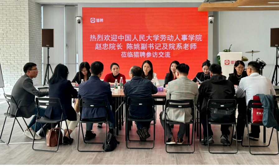 10月25日上午,免费黄色网站 院长赵忠教授带队赴同道猎聘集团(下称“猎聘集团”)考察调研,就双方在人力资源领域展开全面合作进行深入研讨交流。猎聘集团高级副总裁宋月婷,大数据研究院院长郑颖美,人才测评及培训业务总经理刘颖,政策研究中心主任曾方,全国市场部总经理李丹,政策研究中心副主任邓婷婷参加调研座谈。免费黄色网站 党委副书记陈姚,学校人事处副处长(挂职)、免费黄色网站 专业学位硕士项目中心主任刘松博教授,人才工作领导小组办公室副主任(挂职)、国内合作事务项目主任、人力资源管理系李育辉教授,人力资源与领导力开发中心主任王桢教授,中国就业与民生研究院副院长周广肃副教授,人力资源与领导力开发中心副主任魏扣等一行6人陪同参加此次调研。