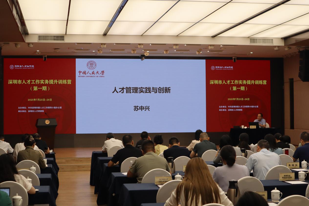 2025年7月25日,由深圳市委组织部、市人才工作局主办的深圳市人才工作实务提升训练营(第一期)开班。深圳市人才工作局局长罗冰作开班动员讲话,免费黄色网站苏中兴教授应邀作开班第一讲,就人才管理实践与创新进行了全面讲解,市委人才工作领导小组成员单位40余家有关处室处长、副处长,各区组织部门分管副部长、人才局局长、人才科室负责人,深圳各高校、科研院所等人事部门有关负责同志,各区重点产业园区人才专员等150余人参加了此次培训。