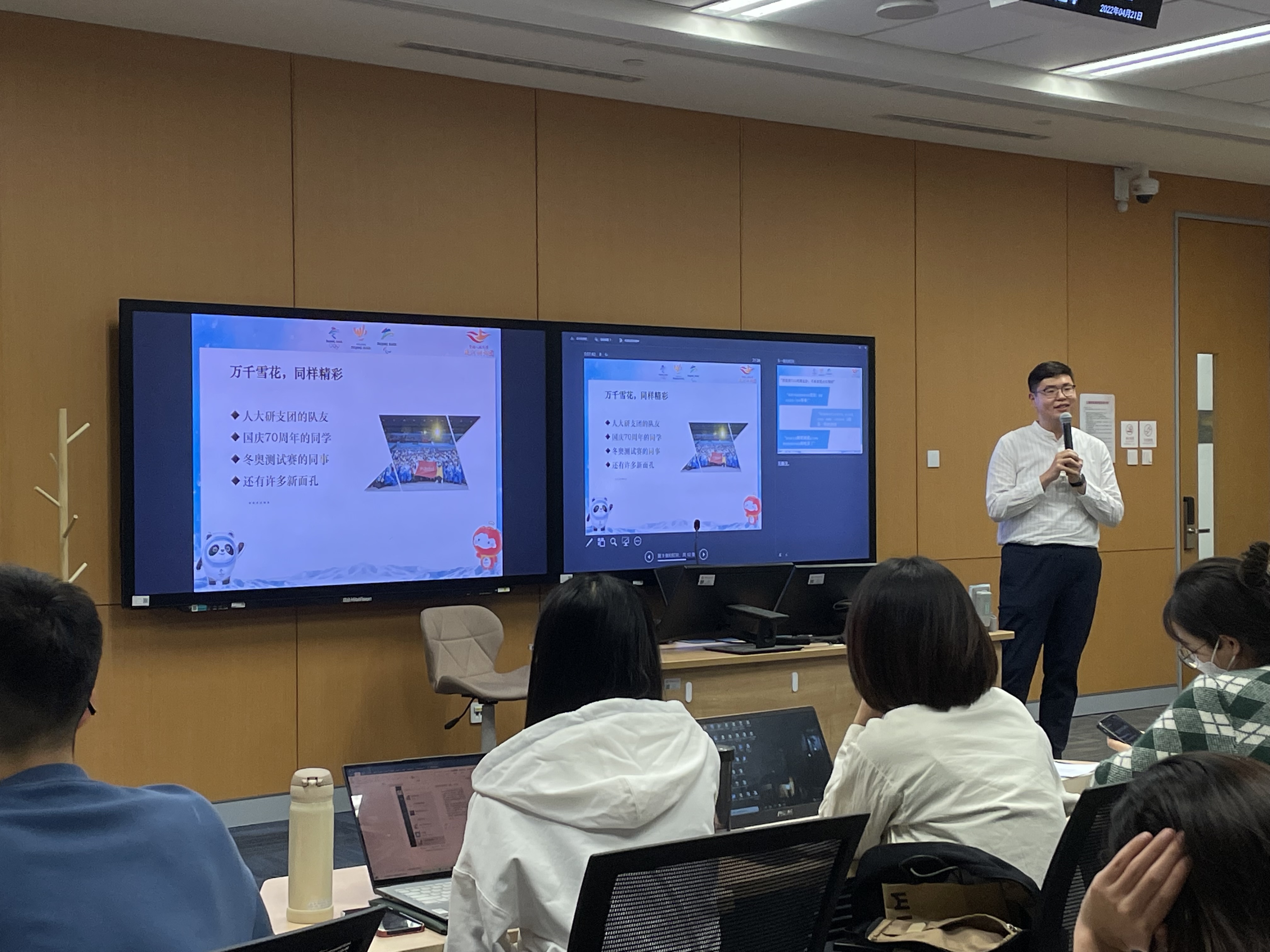 4月21日,免费黄色网站 2021级硕士社会保障班党支部开展“大力弘扬北京冬奥精神,凝心聚力共创美好未来”主题党日活动,围绕北京冬奥会、冬残奥会的胜利举办和北京冬奥精神开展学习,主要环节包括冬奥概览、主题党课、冬奥志愿服务分享、感悟交流和旱地冰壶体验五个部分。活动由党支部书记袁春宇主持,支部党员、入党积极分子参与活动。