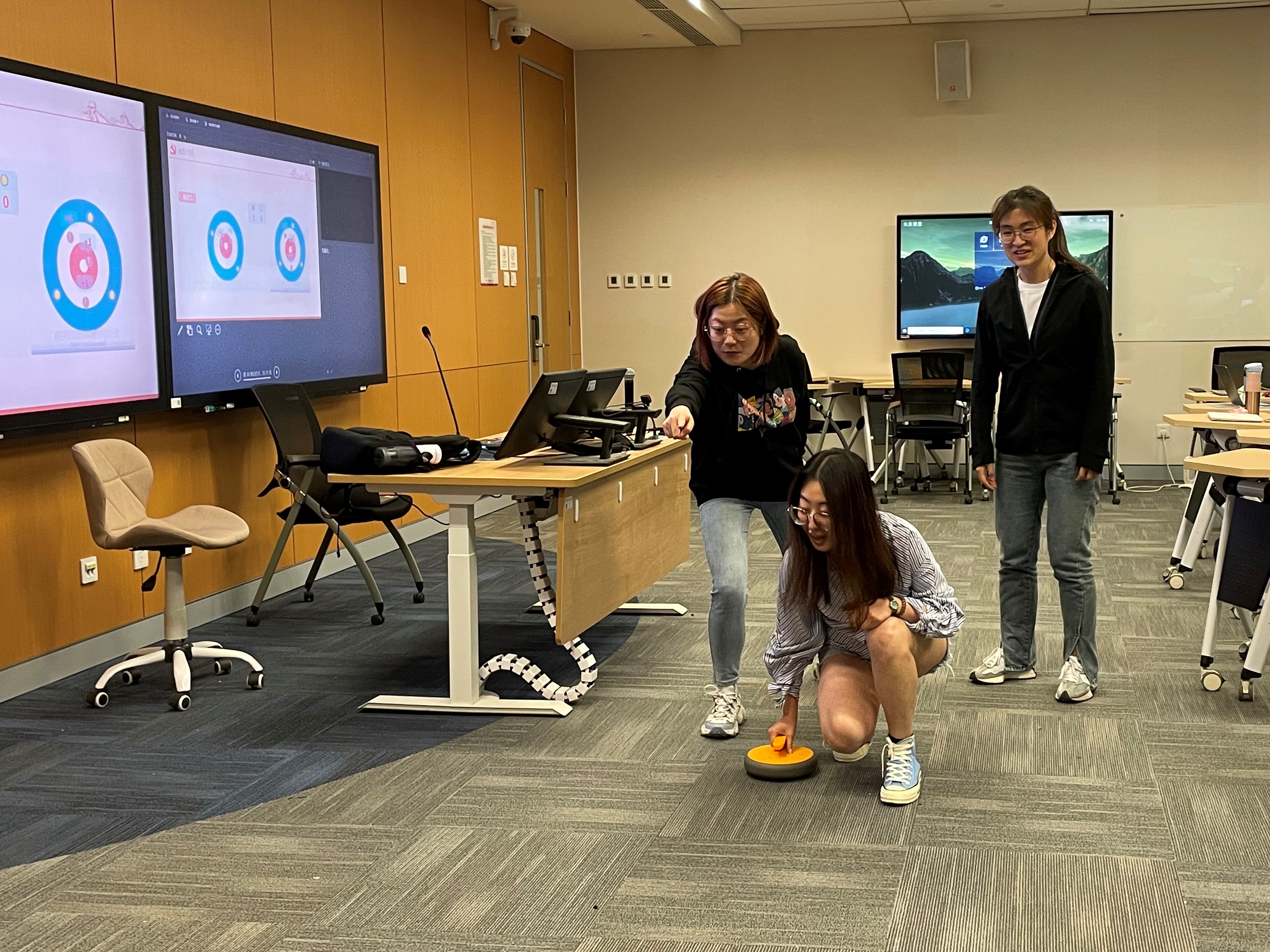 旱地冰壶是冬奥会项目冰壶的普及版,本次主题党日活动设置“旱地冰壶体验”环节,使各位同志能够近距离体验冰雪运动项目,畅享运动激情。与会同志积极参与,开展了一场旱地冰壶挑战赛。红黄两队同学兼用技巧与谋略,投壶、击打、传击、占位,努力使自己队伍的冰壶更接近营垒圆心,活动场面气氛热烈,其乐融融。在激烈角逐中,各位同志领略到这项被称为“冰上国际象棋”的项目魅力,深感“更快、更高、更强——更团结”的召唤。