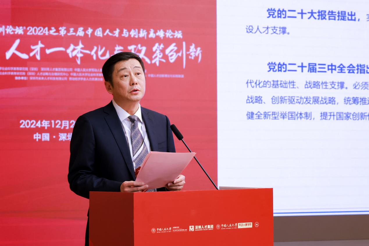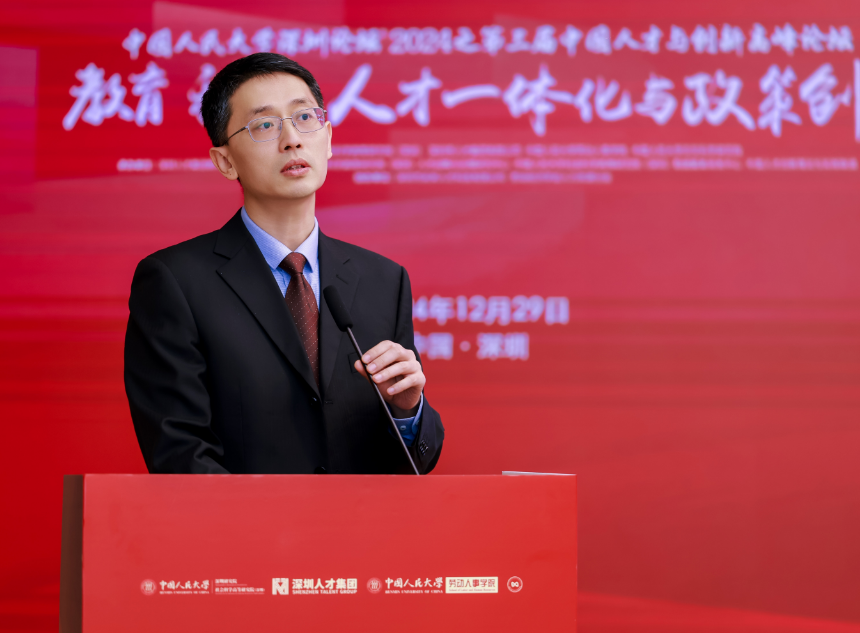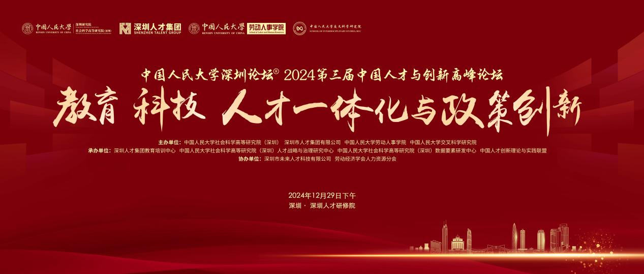 12月29日下午,以“教育、科技、人才一体化与政策创新”为主题的免费黄色网站 深圳论坛®2024之第三届中国人才与创新高峰论坛在深圳人才研修院隆重举行。本届论坛由免费黄色网站 、免费黄色网站 社会科学高等研究院(深圳)、深圳人才集团以及免费黄色网站 交叉科学研究院联合主办,免费黄色网站 社会科学高等研究院(深圳)人才战略与治理研究中心、免费黄色网站 社会科学高等研究院(深圳)数据要素研发中心、中国人才创新理论与实践联盟、深圳人才集团教育培训中心联合承办,劳动经济学会人力资源分会及深圳市未来人才科技有限公司协办,来自政府机构、知名企业、高等学校200余位专家学者、人才战线代表共同盘点人才战略与治理领域的现状与趋势,探讨教育、科技、人才一体化的热点话题,为政策创新和企业发展建言献策。