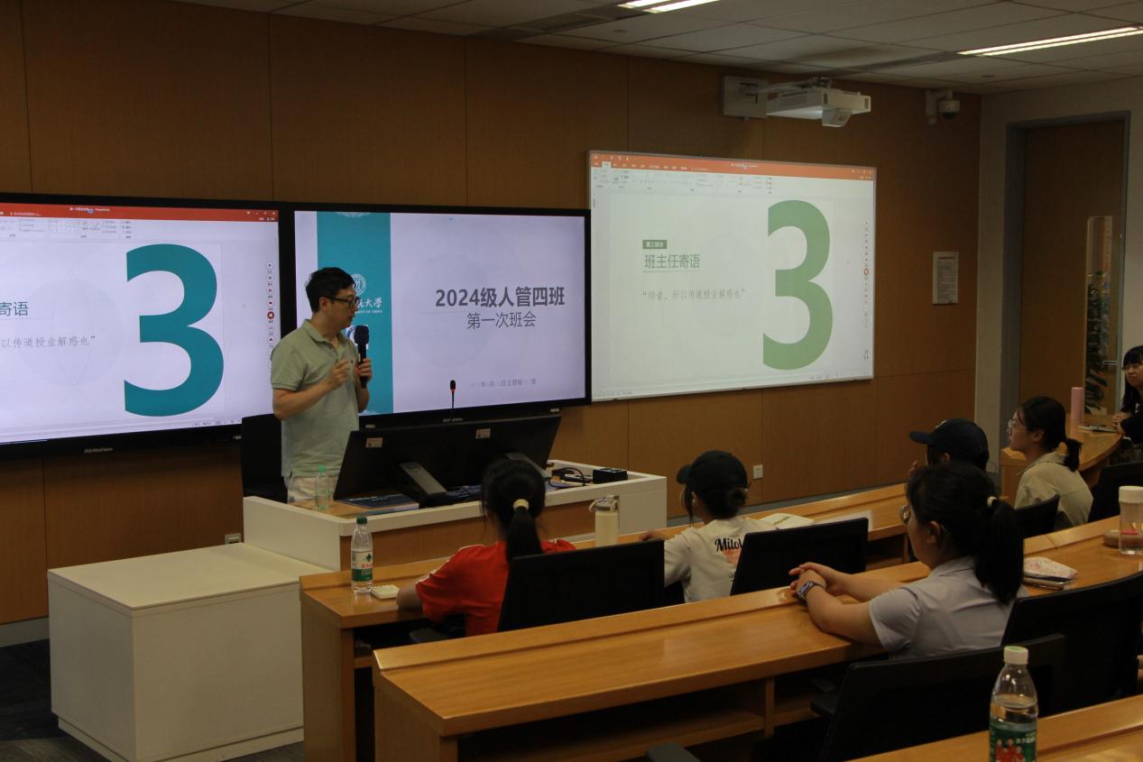 初逢同窗谊,共绘未来景。在第一次班会上,各班首先采取了各具特色的游戏方式,让大家迅速破冰,增进彼此了解。此外,各班班主任与辅导员向大家抛出了一个核心问题:“大学到底该如何度过?”班主任老师们指出,大学生活要在不断尝试中探索适合自己的道路,并在这条道路上沉潜升腾,最终完成自我价值实现。