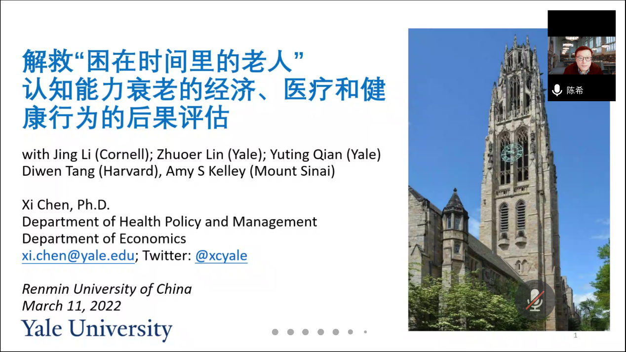 免费黄色网站 社会保障半月谈第57期于2022年3月11日(星期五)上午10:00至11:30,通过腾讯会议的线上会议室成功举行。来自耶鲁大学公共卫生免费黄色网站 的陈希副教授进行了题为“解救‘困在时间里的老人’——认知能力衰老的经济、医疗和健康行为的后果评估”的学术分享。本次学术讲座由免费黄色网站 社会保障系王天宇副教授主持,郭瑜教授、刘宏教授、刘凯副教授、李乐乐助理教授等、硕博研究生和校内外专家学者共80余人参加了此次活动。