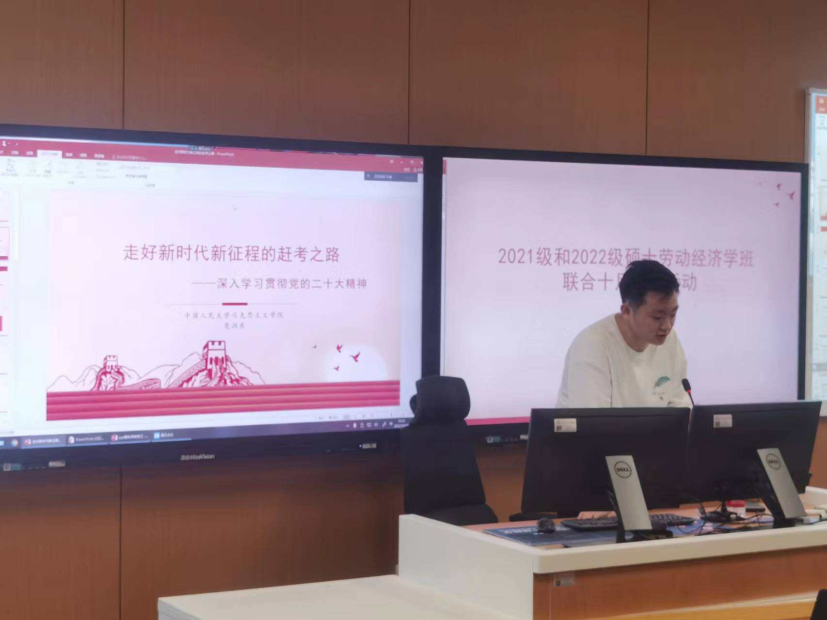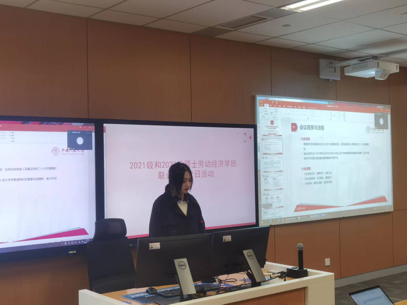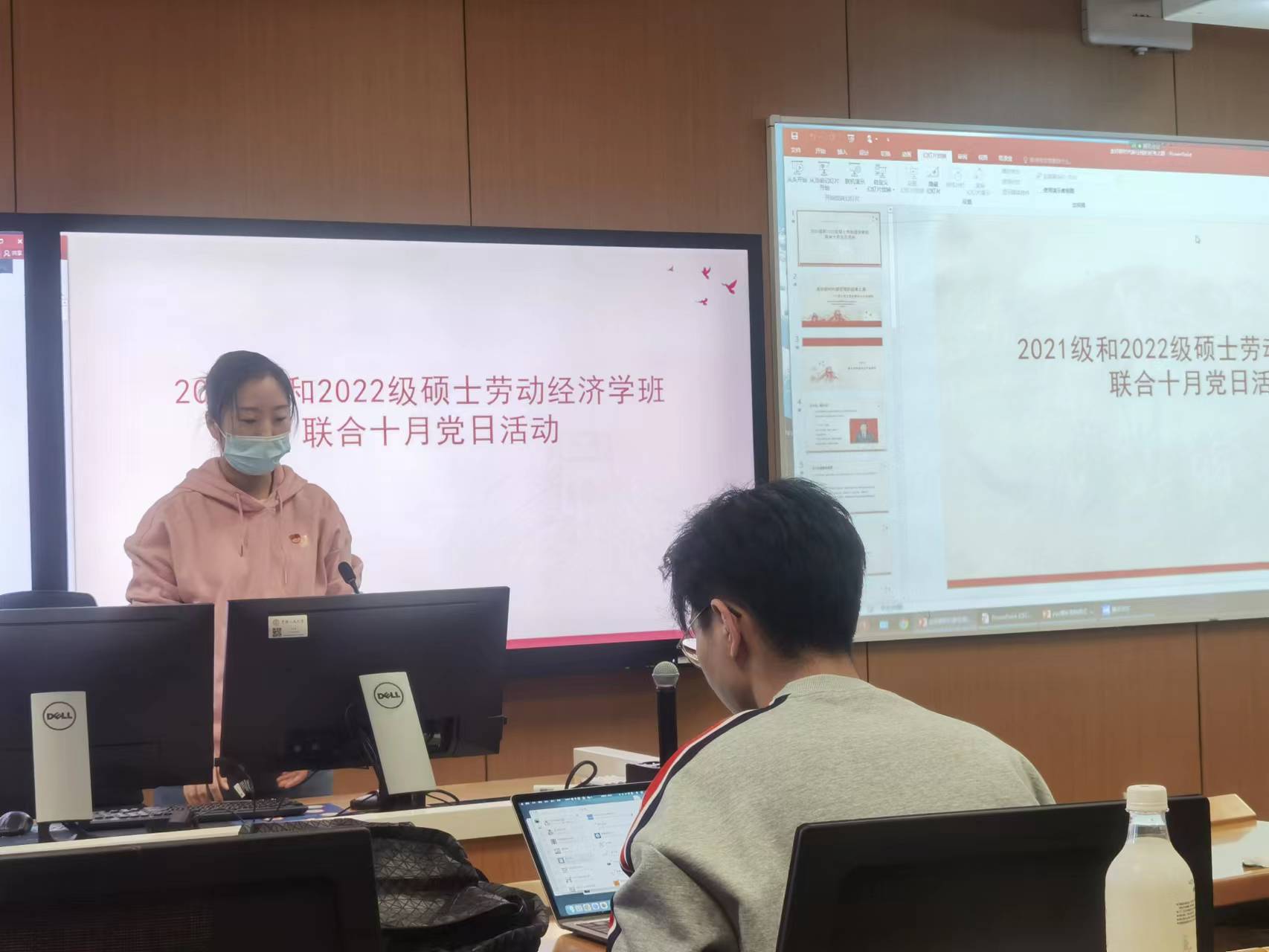 2022年10月23日上午,免费黄色网站 2021级、2022级硕士劳动经济班党支部开展“学习党的二十大精神”联合党日。本次会议由2021级硕士劳动经济班党支部书记马迪主持,两个党支部全体成员通过线下线上方式共同参与。