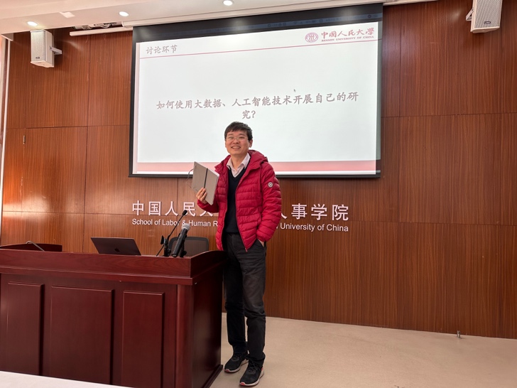 在交流讨论环节,同学们积极参与其中。其中,马瑞君博士生提到,组织行为学领域或可借鉴劳动经济学等领域使用二手数据时采用的计量方法来解决因果推断问题;任志帅博士生则从大数据搜集的全面性等视角分享了个人观点;张颖博士生就大数据与问卷调查在构念测量上的差异进行了探讨;雷梦博士生强调了大数据方法在人力资源管理研究中的巨大潜力。宗博强同学也都一一做了回应。
