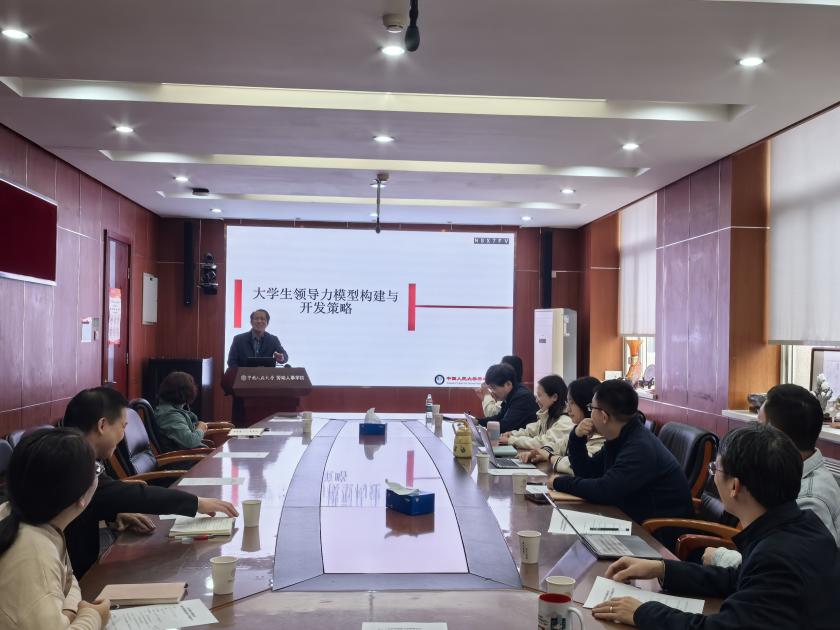 “元认知”或“元素质”的识别,强调大学生不仅需要学习领导力相关的知识和技能,更需要培养动机、价值观、思维方式等底层素质。李海蓉强调我们应结合人大特色和资源,利用人大在人文社科领域的独特地位和学校鲜明的红色基因对大学生进行领导力培育,同时要考虑领导力开发的层次递进问题。毛凯贤建议领导力模型构建需要兼顾领导力纵向层次和横向划分的协调性。魏昕建议,大学生领导力模型可以和国家的重要战略方向结合地更加紧密,还应体现数智化时代的特征等。老师们还探讨了课堂学习、课外实习实践、课题调研等培养内容在大学生领导力开发中的作用。