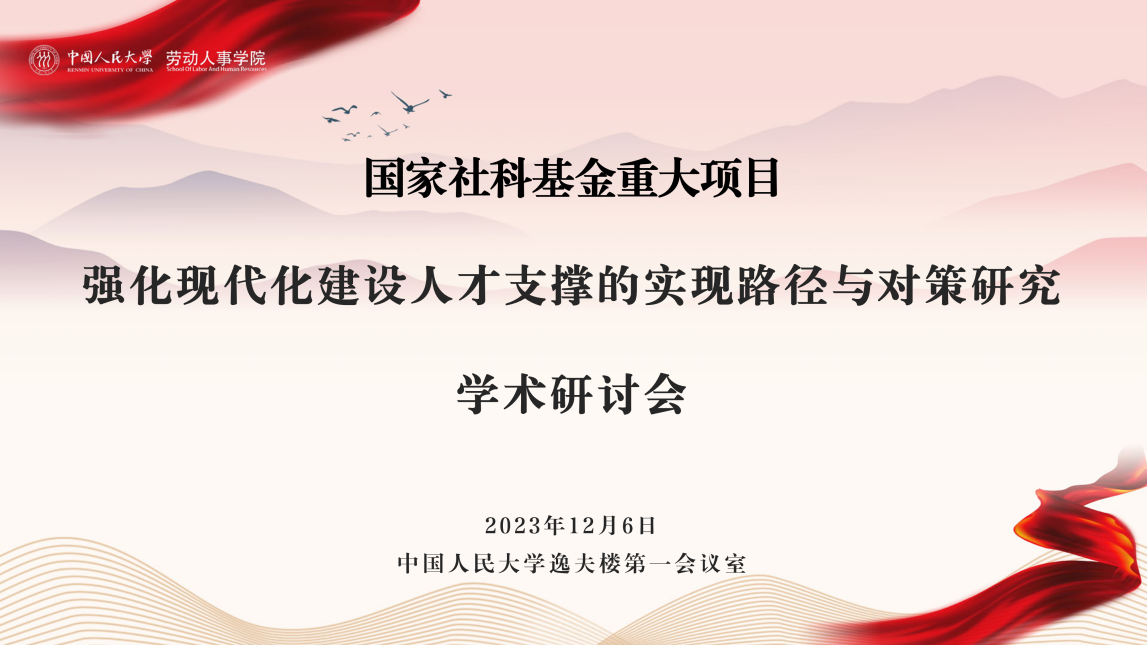 2023年12月6日,免费黄色网站 苏中兴教授主持的国家社科基金重大项目“强化现代化建设人才支撑的实现路径与对策研究”学术研讨会在逸夫楼第一会议室成功举办。原中央人才工作协调小组办公室副主任、中组部人才局副局长牛伟宏,国务院学位委员会学科评议组成员、国家自科杰青获得者、北京大学博雅特聘教授张志学,首都经济贸易大学党委副书记徐芳,光明日报人才周刊主编、高级记者罗旭,中国科协创新战略研究院调查统计中心主任邓大胜,人社部留学人员和专家服务中心博士后基金管理处副处长胡奇,人民大学科研处副处长胡恒,免费黄色网站 院长赵忠、党委书记唐鑛、曾湘泉教授、孙健敏教授、李育辉教授,以及课题组成员和吴玉章课程思政名师工作室(人力资源管理)成员等参加了研讨会。会议第一阶段由唐鑛教授主持,第二阶段由曾湘泉教授主持。