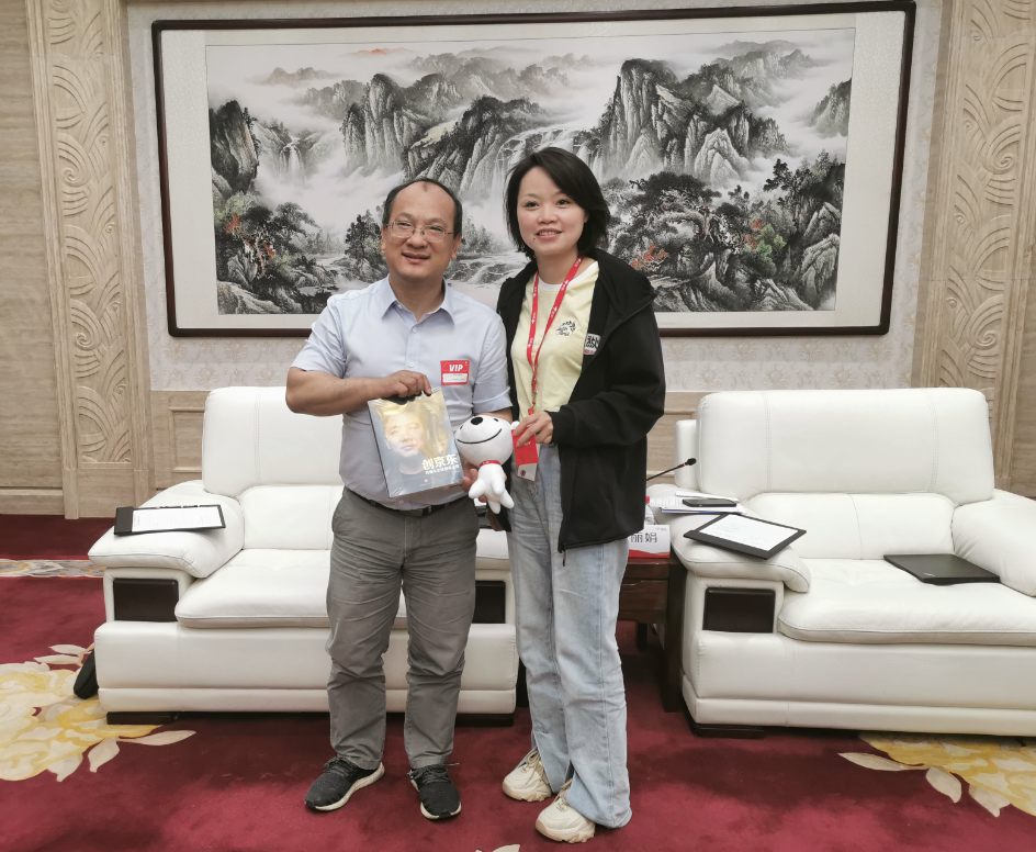 座谈会结束后,石丽娟代表京东集团向免费黄色网站 赠送纪念品,京东集团刘志欣、唐菲等陪同赵忠院长一行参观了京东集团,并合影留念。