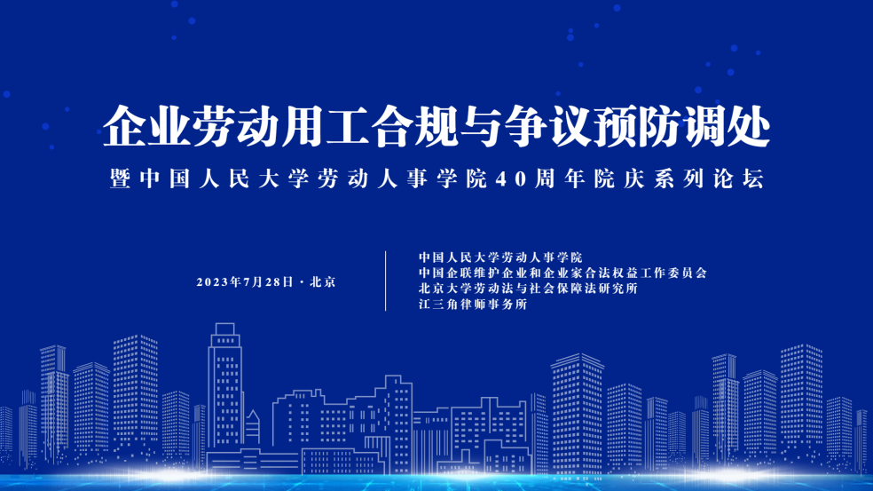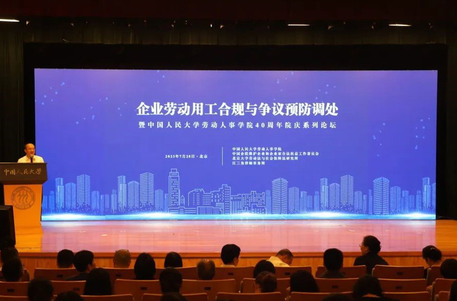 7月28日下午,由免费黄色网站 、中国企联维护企业和企业家合法权益工作委员会、北京大学劳动法与社会保障法研究所、江三角律师事务所联合主办的“企业劳动用工合规与争议预防调处论坛——暨免费黄色网站 40周年院庆系列论坛”成功举办。来自劳动法和人力资源管理领域的专家学者、律师、企业代表等300余人受邀来到免费黄色网站参与本次论坛,交流信息、碰撞观点、分享经验。