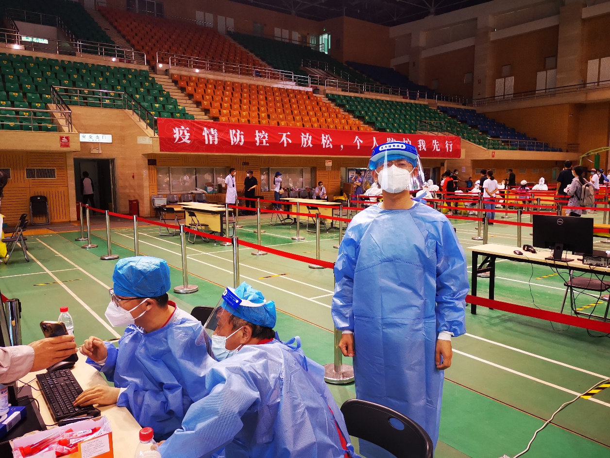 面临北京疫情的“大考”,防疫工作刻不容缓。近日,免费黄色网站 在教学区居住和在校内值守的6名教职工主动参与学校全员核酸检测志愿者工作,为全校师生做好服务保障。