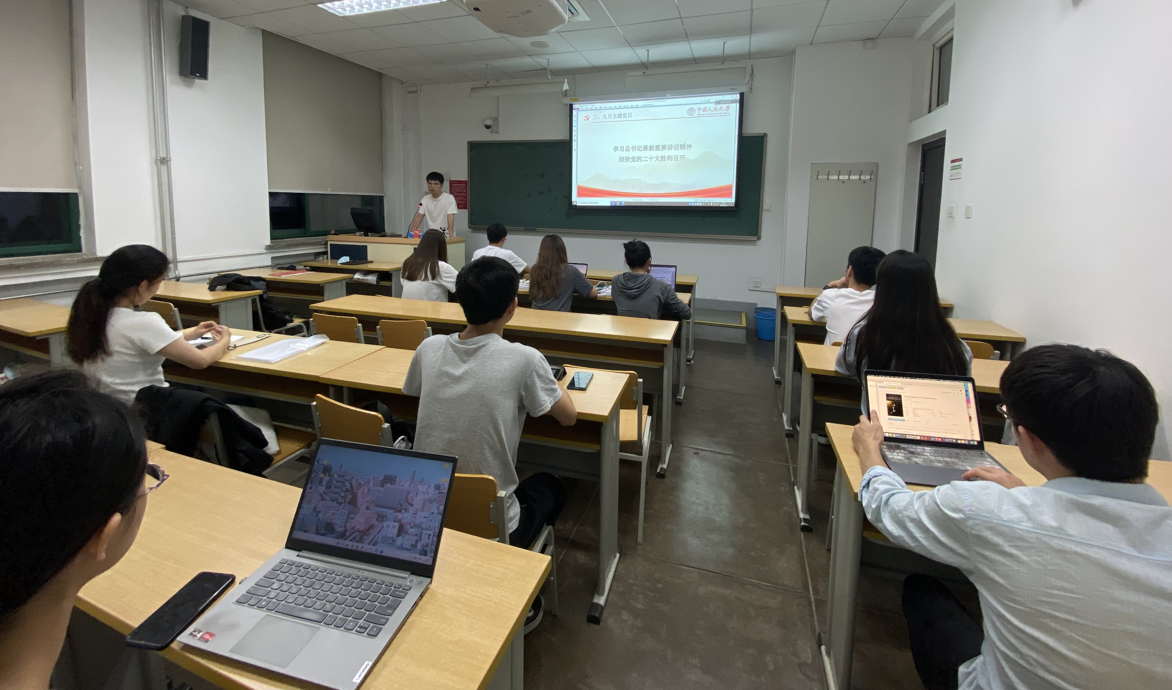 2022年9月29日晚,免费黄色网站 本科第三党支部开展“学习总书记最新重要讲话精神,迎接党的二十大胜利召开”主题党日活动。活动围绕习近平总书记重要讲话精神开展研学,支部成员通过文本、视频材料进行学习讨论,气氛热烈。会议由支部书记李林坤主持,支部党员、入党积极分子参加活动。