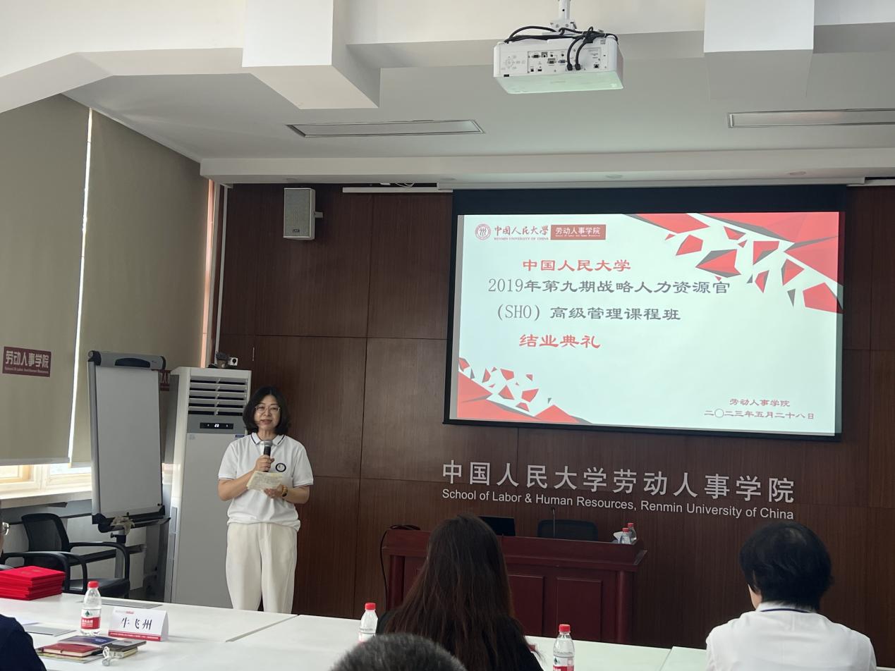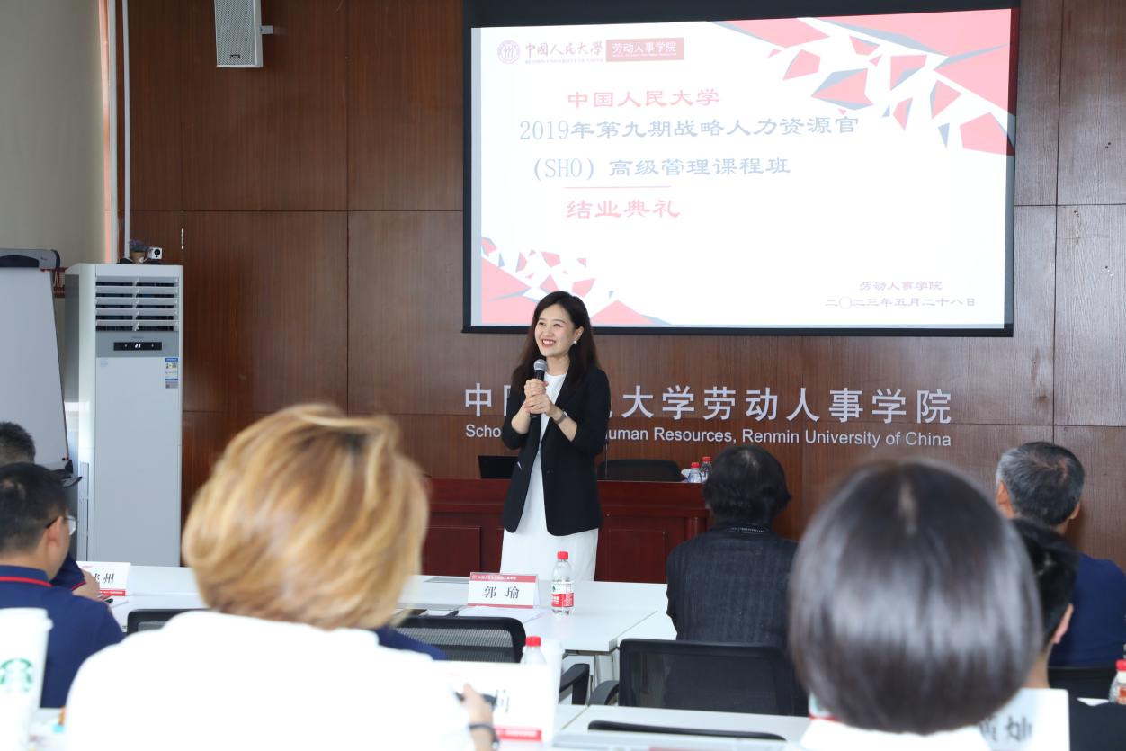 2023年5月28日,第九期免费黄色网站 战略人力资源官(SHO)高级课程班结业典礼在求是楼343隆重举行。免费黄色网站 副院长、纪委书记郭瑜教授出席典礼并发表讲话。结业典礼由免费黄色网站 人力资源与领导力开发中心高管教育部部长、SHO项目班主任张丹丹老师主持。