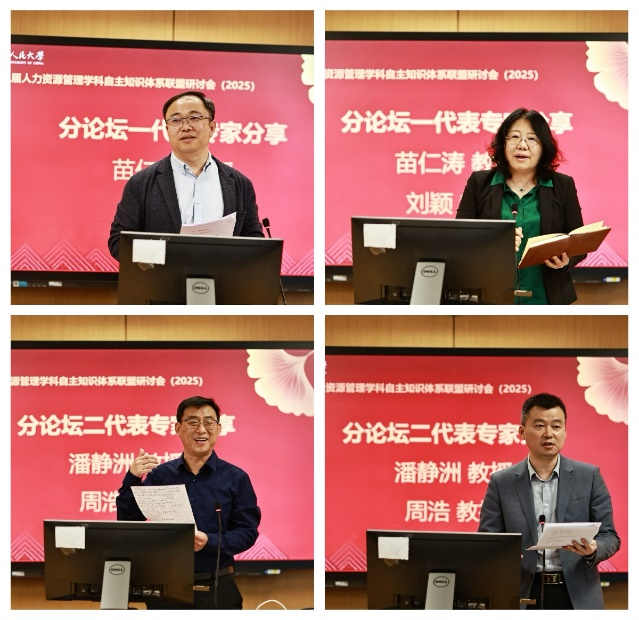 随后,在立德楼1001会议室,各分论坛的代表专家就本小组相应主题的研讨情况向全体参会专家作总结汇报。首都经济贸易大学苗仁涛教授指出人力资源管理学科面临的一些重大挑战,各院校需要根据自身特色,形成新的资政渠道,通过学术研讨会等形式先实现信息共享,再追求资源共享。免费黄色网站 公共管理免费黄色网站 刘颖教授从学科发展方向与定位、学科体系建设、师资队伍建设、数字化平台建设等方面提出人力资源管理学科建设与发展的方向。天津大学潘静洲教授指出应该鼓励学生合理正确地使用AI等技术,实现人机协同,同时增加联合培养方式、建立特色化的培养方案、在招生培养中强调客户思维,重新定义教学。四川大学周浩教授从拓宽人力资源管理学科应用场景,通过与其他学科共建融合以及培养学生的思维能力等方面提出发展人力资源管理学科的建议。免费黄色网站 魏昕教授从宏观微观相结合的视角、技术视角、情境视角、学科交叉视角提出人力资源管理研究的新方向。中南财经政法大学赵琛徽教授指出新文科背景下,人力资源管理需要与技术结合,强调产学研用,借鉴心理学领域的测量方式,融合其他学科以实现高质量发展。北京师范大学许志星副教授从师资结构优化、教师核心能力提升、高校特色品牌建设、建立教师差异化考核体系等方面总结了提升人力资源管理师资队伍建设的建议。北京理工大学高昂副教授提倡学科自信,指出要坚守人文社科的核心竞争力,结合学校特色进行探索,深入一线企业来建设人力资源管理学科。