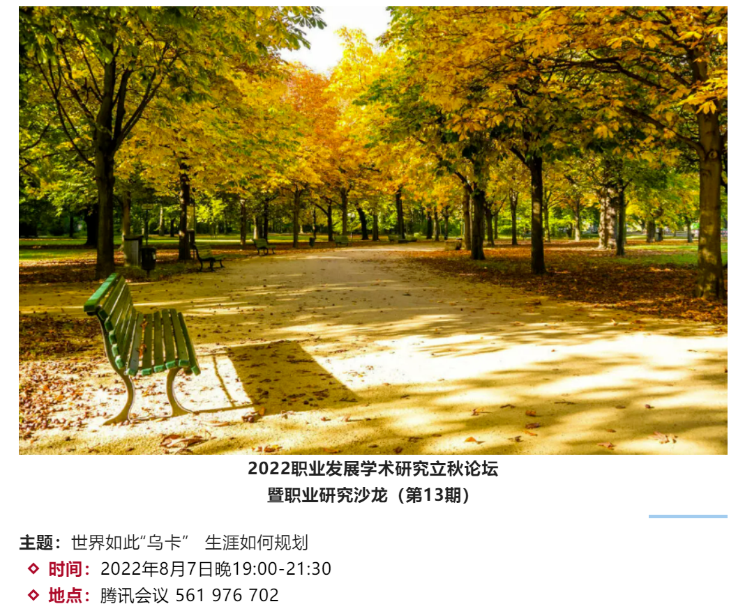 免费黄色网站 职业开发与管理系、劳动经济学会职业开发与管理分会和免费黄色网站 组织行为学研究所主办的2022年职业发展学术研究立秋论坛暨职业研究沙龙(第13期)于2022年8月7日(星期日)晚上19:00至21:30借助腾讯会议的线上途径顺利开展。