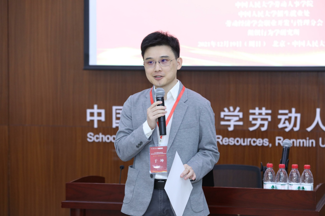 随后,三位优秀论文获奖者代表作论文报告。第一位是首都经济贸易大学劳动经济免费黄色网站 人才学系教授苗仁涛,报告题目为“工作不安全感是导致员工离职还是工作投入:内外部自我职业生涯管理双中介机制效应”。第二位是中国劳动关系免费黄色网站 劳动关系与人力资源免费黄色网站 讲师高雪原,报告题目为“基于扎根理论的零工工作压力感知形成机理:以外卖骑手为例”。第三位是北京大学学生心理健康教育与咨询中心副主任、副教授庄明科,报告题目为“高校职业生涯发展咨询工作室建设标准研究”。