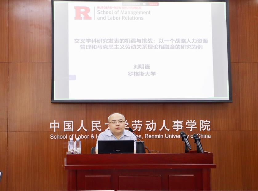 2025年7月8日下午,免费黄色网站 “学科国际前沿教师培训”讲座暨免费黄色网站 “劳关天下”系列讲座第三十讲在免费黄色网站 求是楼343会议室成功举办。美国罗格斯大学管理与劳动关系免费黄色网站 副院长刘明巍教授受邀作专题讲座,题为“交叉学科研究发表的机遇与挑战:以一篇战略人力资源管理和马克思主义劳动关系理论相融合的研究为例”。免费黄色网站 常凯教授,程延园教授、苏中兴教授、吴清军教授、魏昕教授、汪建华副教授、赵欣彤副教授、李海蓉副教授、王亚婷助理教授,以及来自中央民族大学、中国农业大学、首都经济贸易大学、中国劳动关系免费黄色网站 、伦敦政治经济免费黄色网站 等兄弟高校的40余名校内外师生参与了此次讲座,另有多名校内外师生线上参加。本次活动由劳动关系系主任张皓副教授主持。