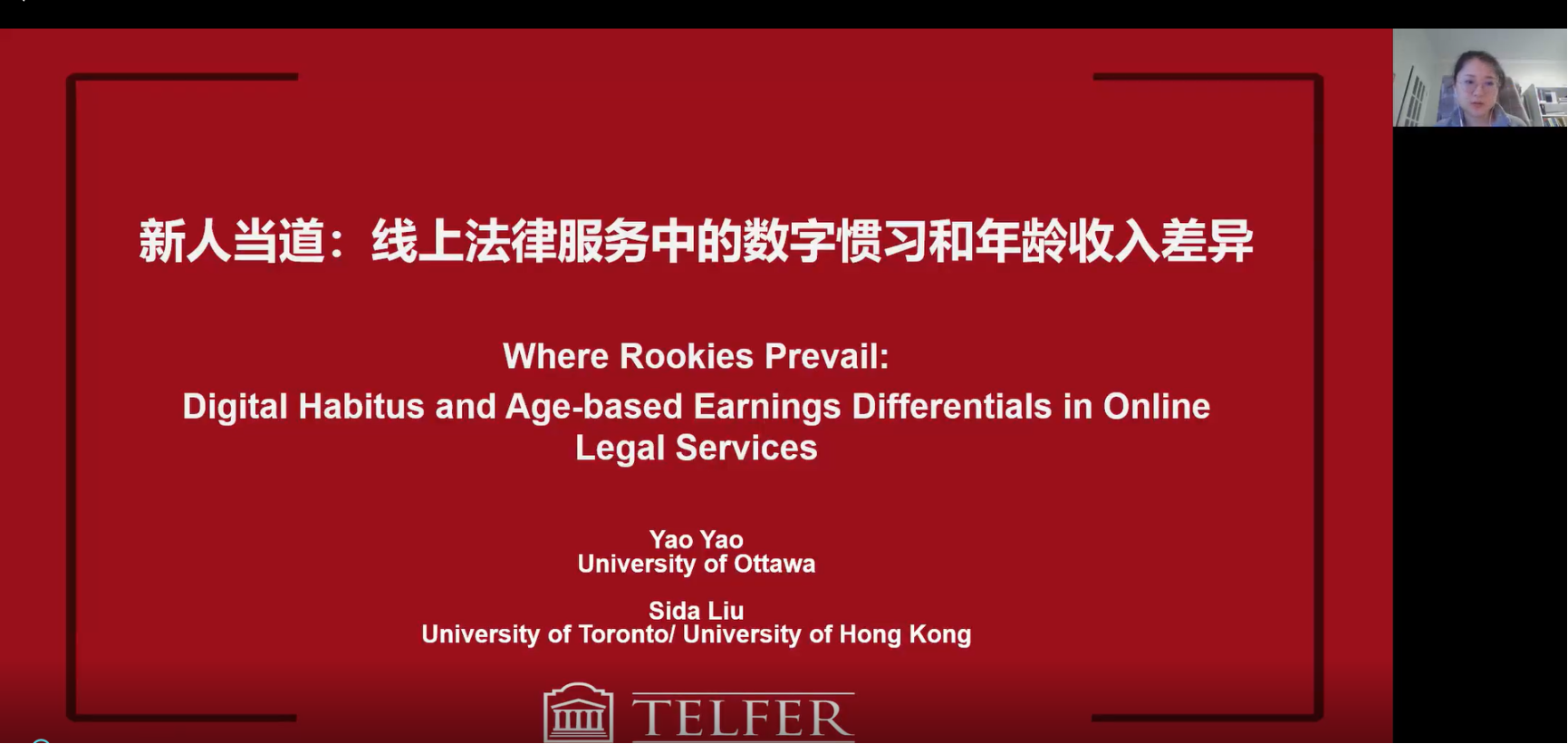 主办,劳动关系系承办的“劳关天下”系列讲座于2022年11月16日(星期三)上午9点30分,通过腾讯线上会议的方式成功举办。来自渥太华大学的姚瑶老师进行了题为“新人当道:线上法律服务中的数字惯习和年龄收入差距”的学术分享。本次学术讲座由免费黄色网站