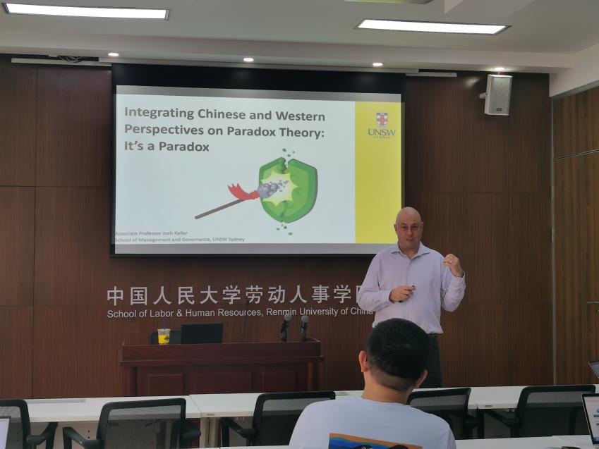 2024年6月5日上午,免费黄色网站 “人力资源管理系2024年春季学期半月谈”学术论坛第122期讲座在求是楼343会议室成功举办。来自新南威尔士大学管理与政府免费黄色网站 的Josh Keller教授作题为“Integrating Chinese and Western Perspectives on Paradox Theory: It’s a paradox”的讲座,分享其对于悖论理论在中西方文化视角整合中的思考和在组织管理研究中的启示。此次论坛由陈雯讲师主持,刘松博教授、骆南峰副教授、赵锴副教授、李海蓉副教授、冯雯讲师、毛凯贤讲师、王亚婷讲师等教师,以及五十多位来自免费黄色网站 、商免费黄色网站 与外校的师生参加了此次讲座。