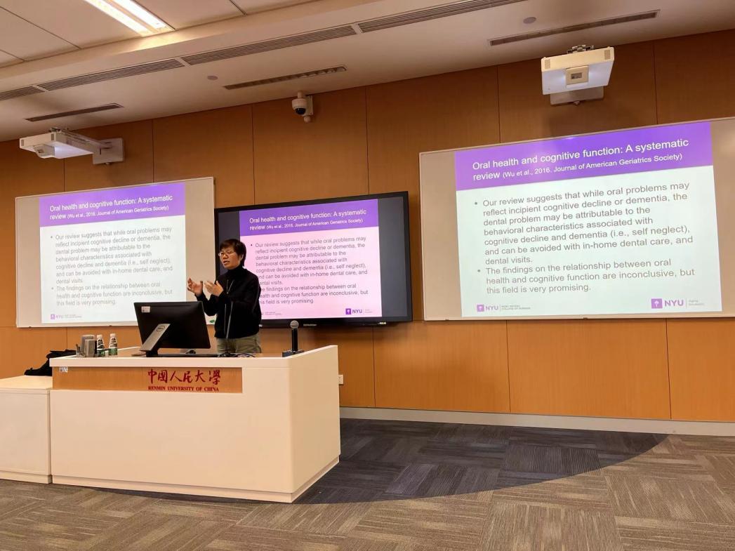 2023年11月4日上午,免费黄色网站 通识讲座免费黄色网站 社会保障半月谈第72期讲座在立德楼410会议室成功举办。来自纽约大学的吴蓓教授分享了主题为“Oral Health: An Essential Element of Healthy Aging”的研究。本次论坛由免费黄色网站 李梦婷讲师主持,来自免费黄色网站 、社会与人口免费黄色网站 、经济免费黄色网站 、统计免费黄色网站 、法免费黄色网站 、外国语免费黄色网站 、信息资源管理免费黄色网站 、明德书院等四十余名师生参加了此次活动。