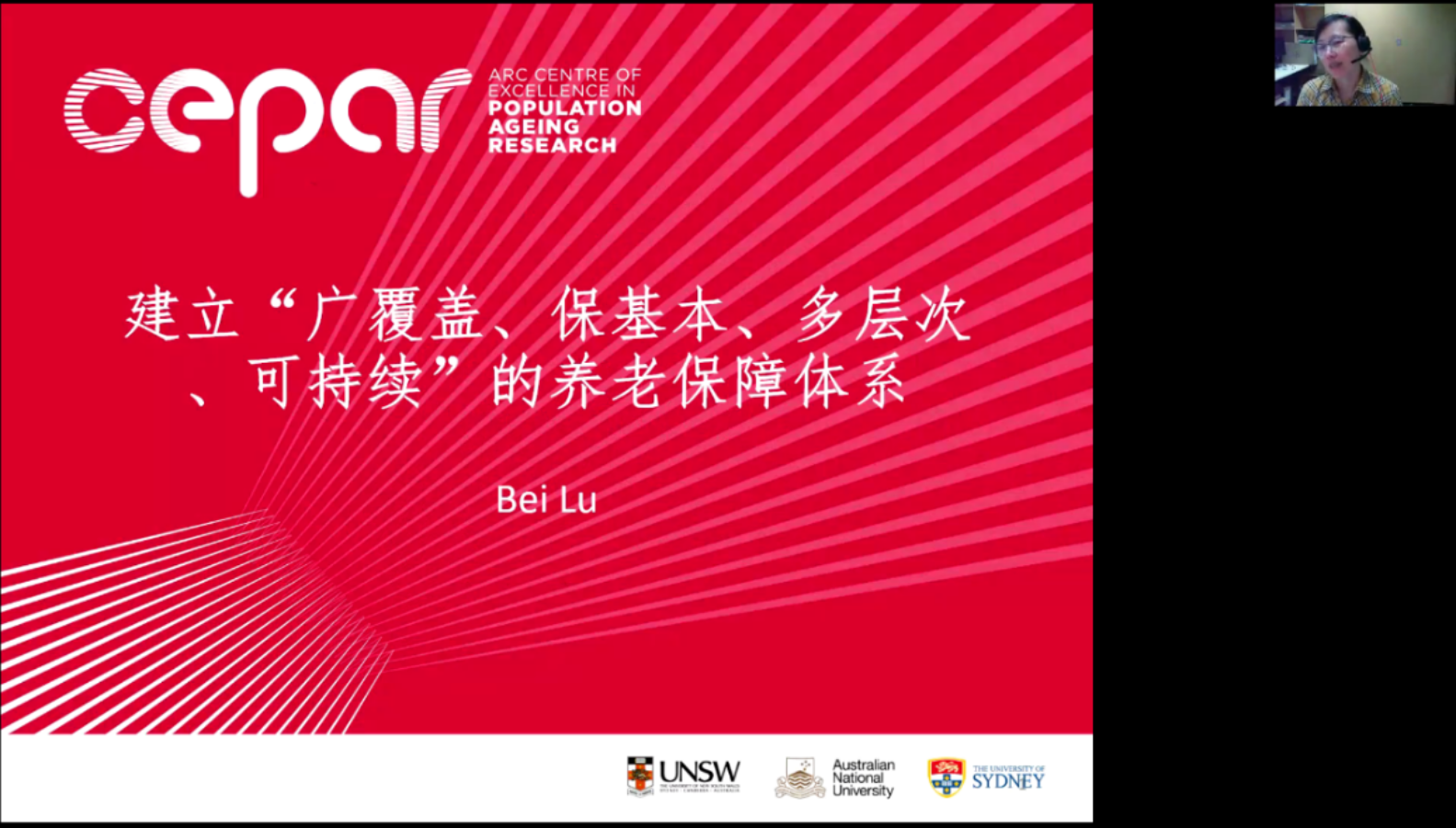 免费黄色网站 社会保障半月谈第56期于2022年1月11日(星期二)下午13:00至14:30,通过腾讯会议的线上会议室成功举行。来自澳大利亚新南威尔士大学人口老龄化研究中心(CEARP)的高级研究员鲁蓓博士进行了题为“建立‘广覆盖、保基本、多层次、可持续’的养老保障体系”的学术分享。本次学术讲座由免费黄色网站 社会保障系刘宏教授主持,复旦大学的封进教授、免费黄色网站 的郭瑜教授、刘凯副教授、王天宇副教授、李乐乐老师等校内外学者以及近50位硕博研究生参加了此次活动。