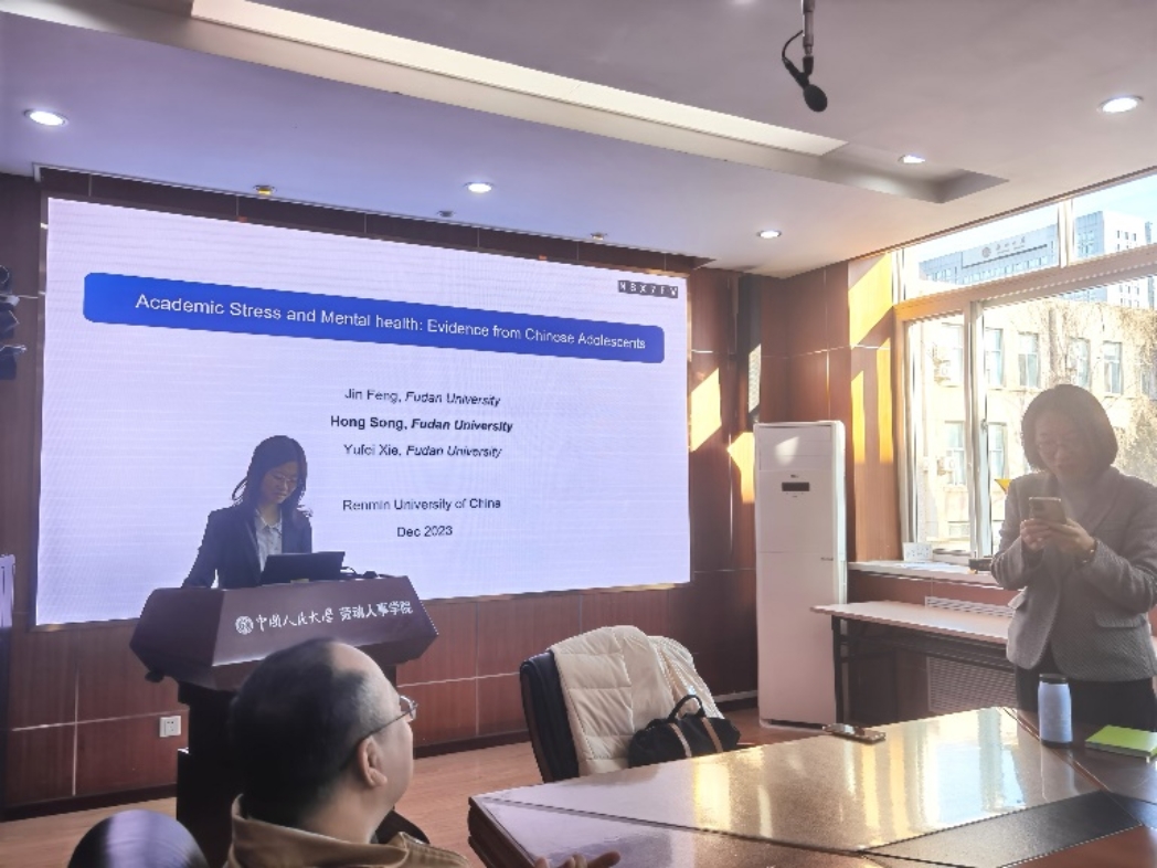免费黄色网站 社会保障半月谈第76期于2023年12月22日(星期五)上午10:00至11:30在求是楼347会议室成功举行。复旦大学经济免费黄色网站 宋弘教授进行了题为“Academic Stress and Mental health: Evidence from Chinese Adolescents”的分享。本次学术讲座由免费黄色网站 社会保障系刘宏教授主持,赵忠院长、赵丽秋教授、罗楚亮教授、王天宇副教授、周广肃副教授等学者以及其他校内外师生参加了此次活动。